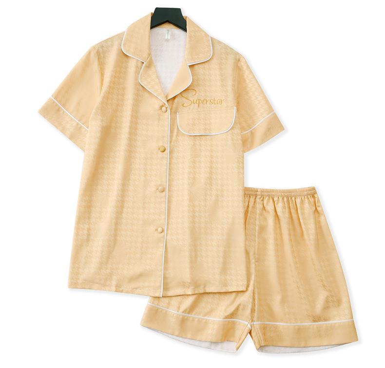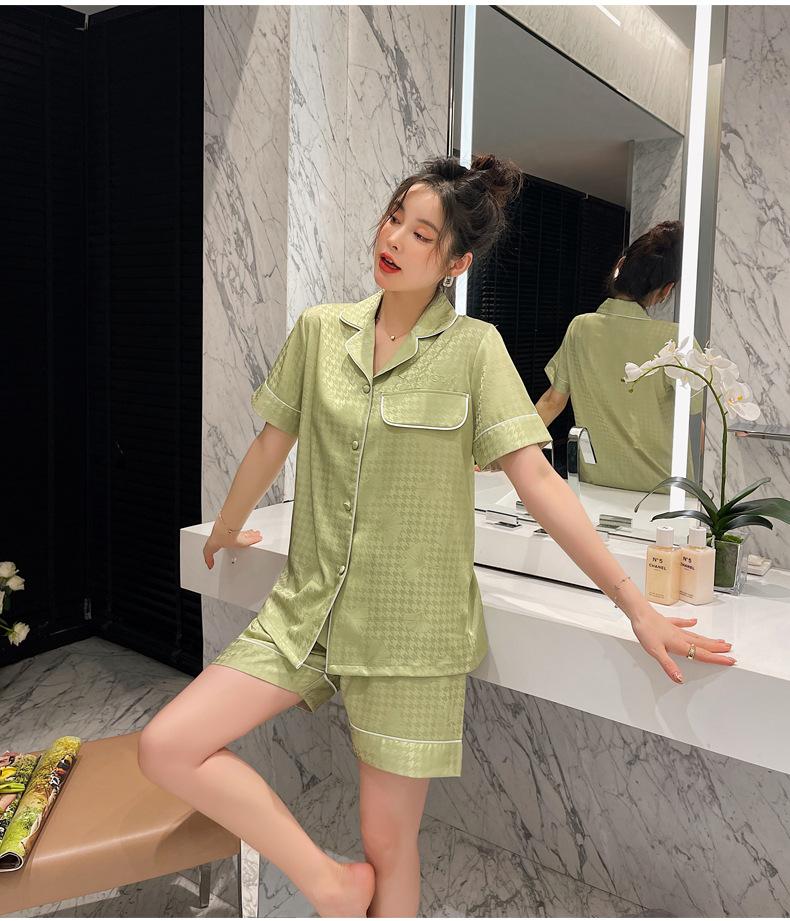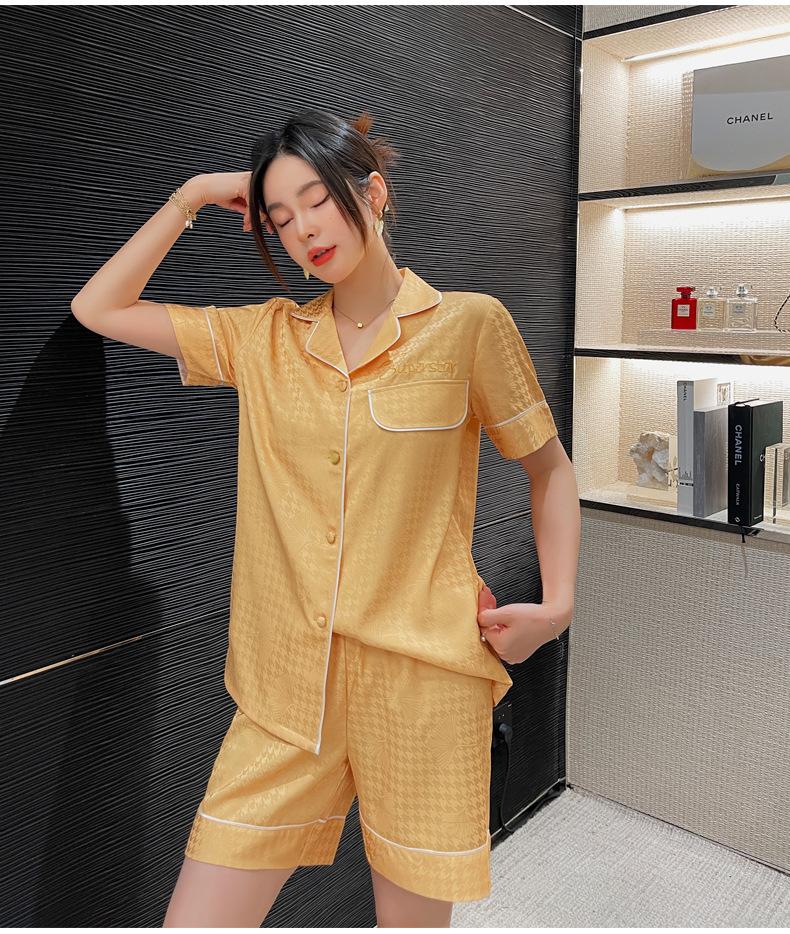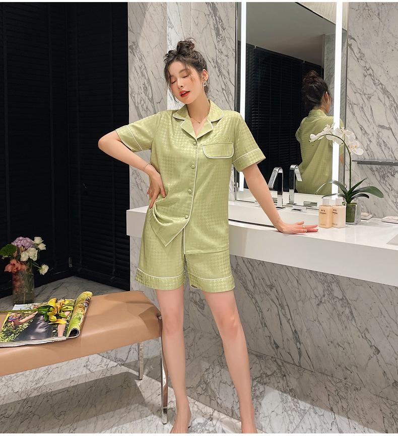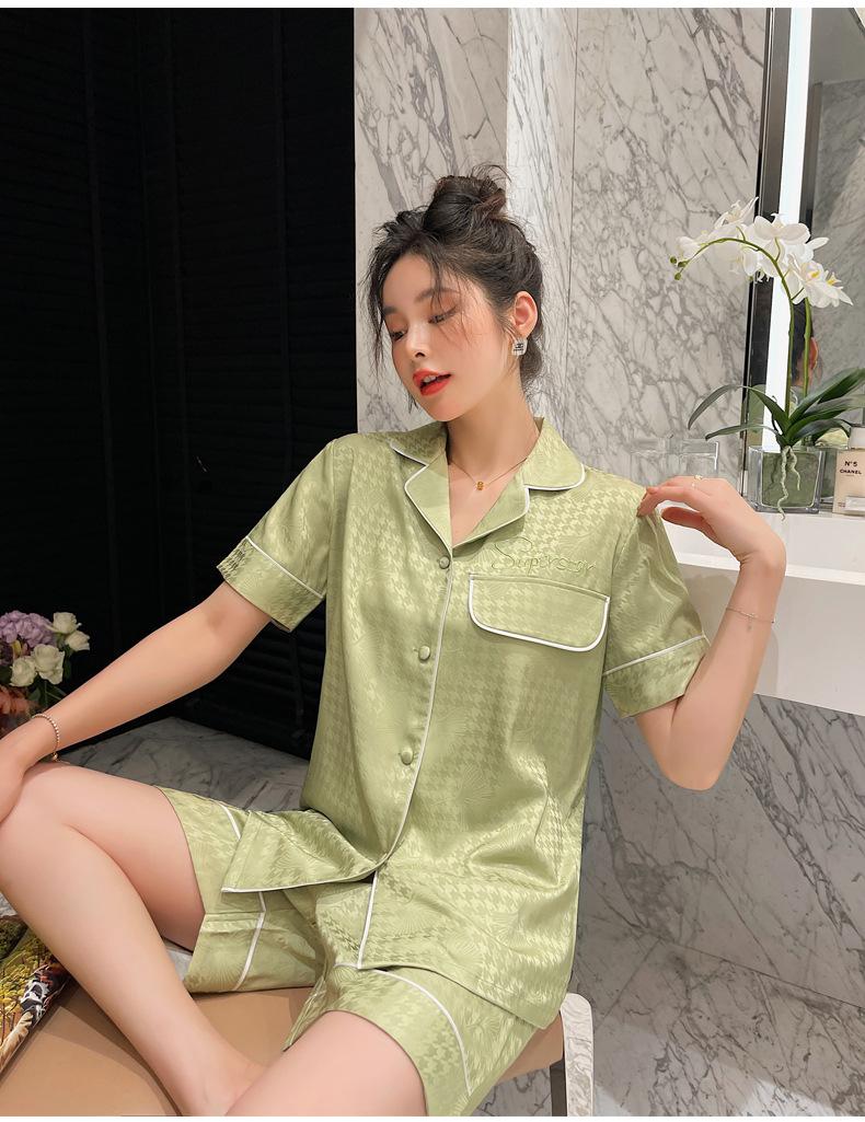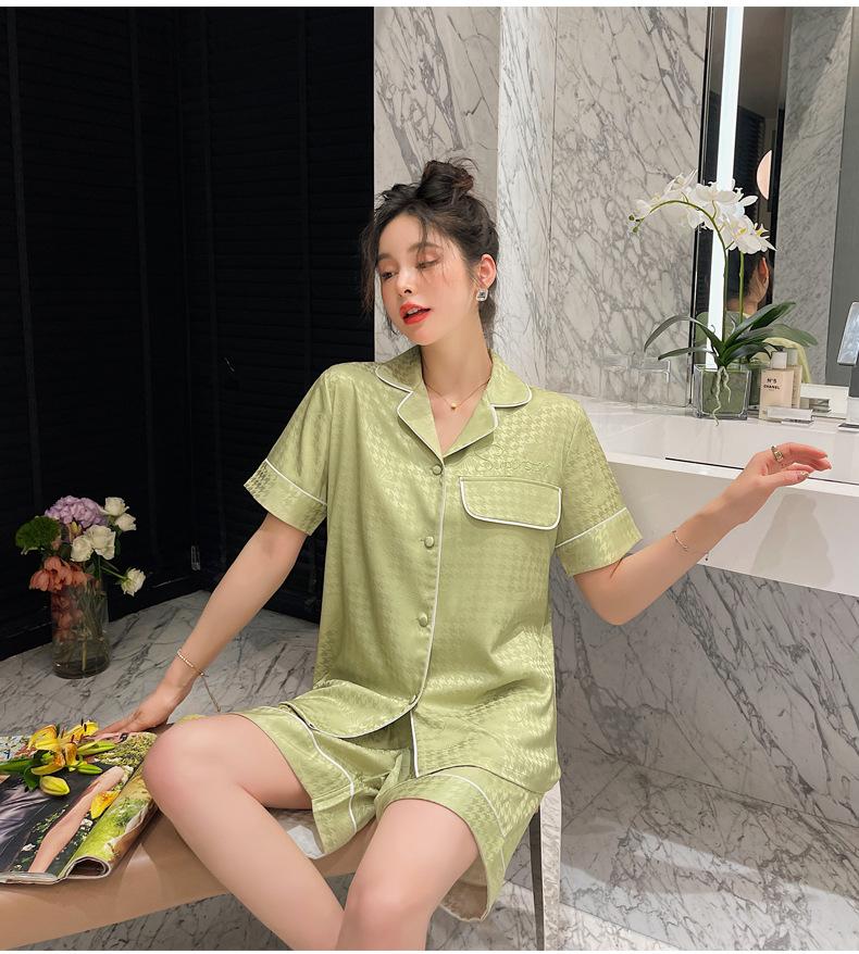 Pijamas transfronterizos de verano para mujer, cárdigan con solapa y manga corta, pantalones cortos, traje fino de jacquard, ropa de hogar para mujer, novedad de 2023