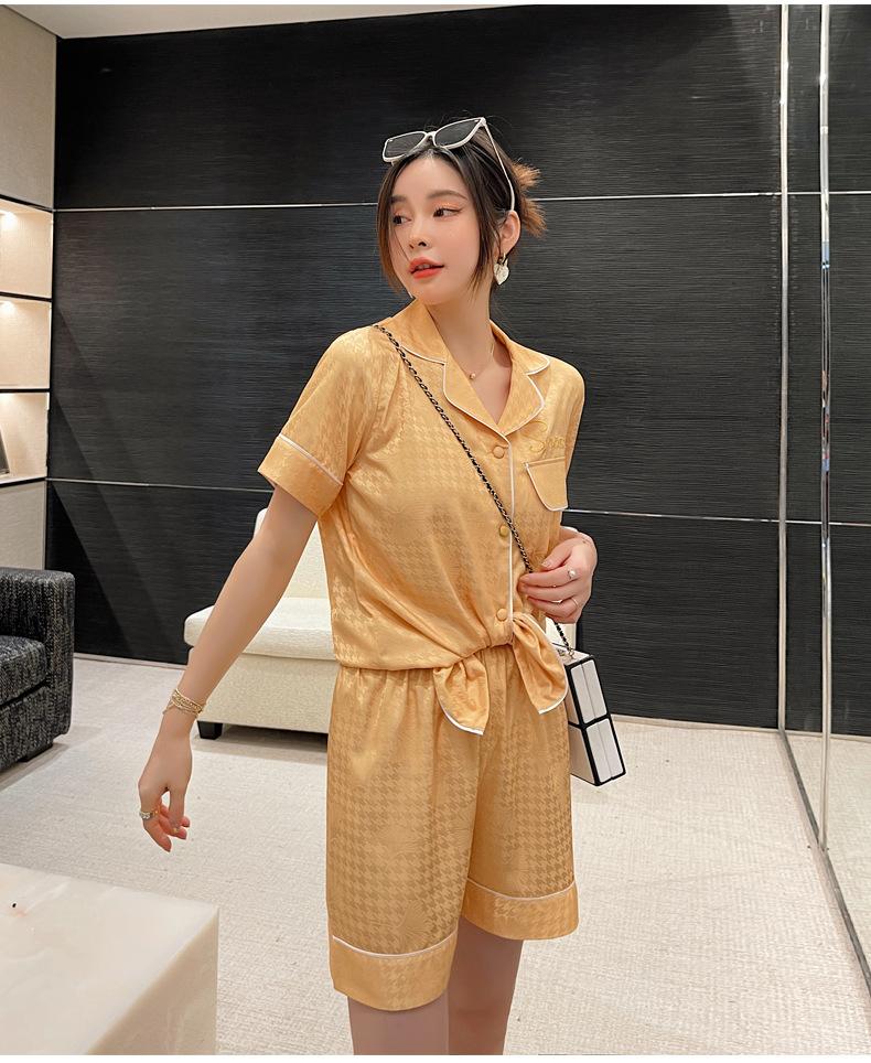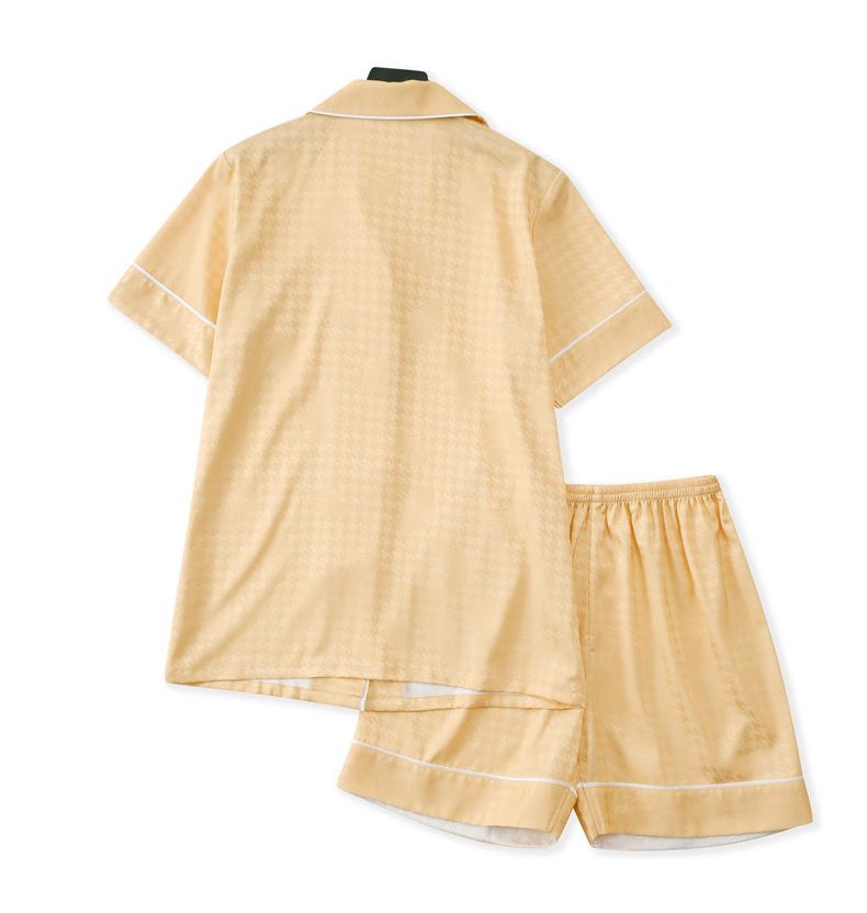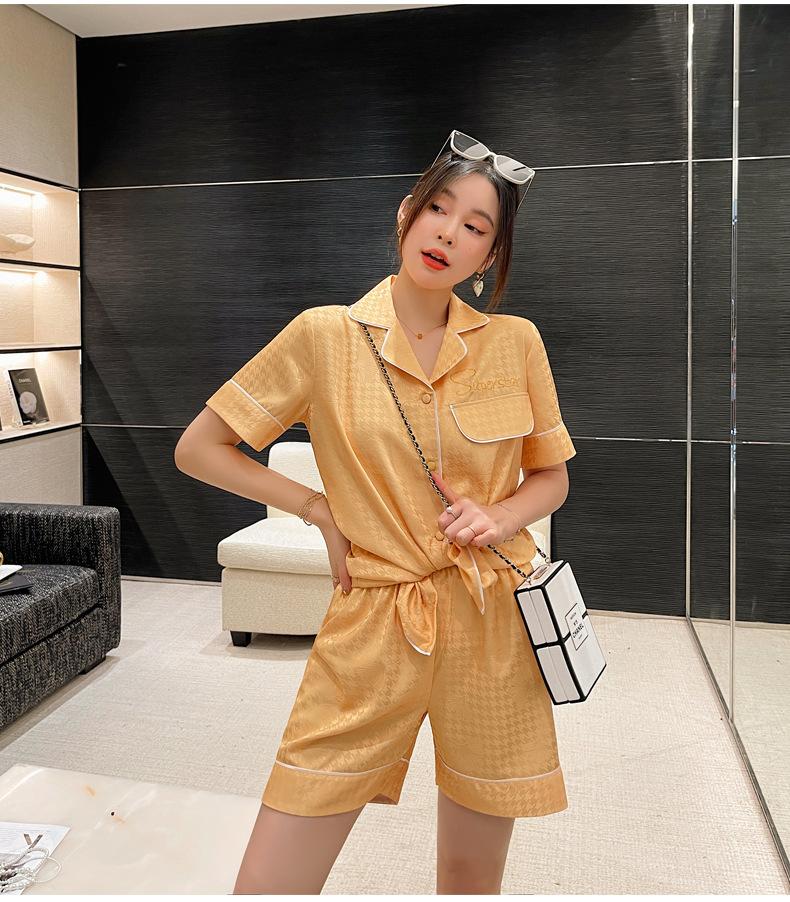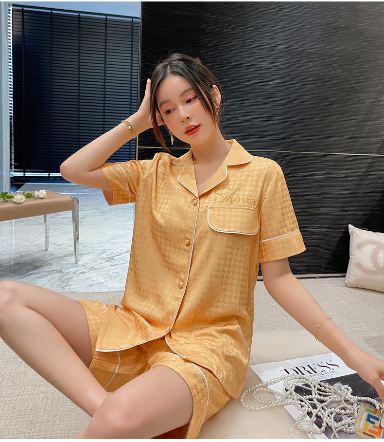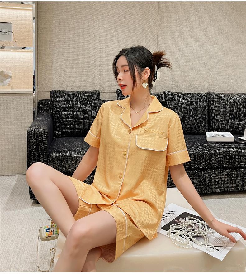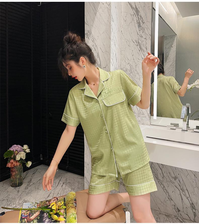 Pijamas transfronterizos de verano para mujer, cárdigan con solapa y manga corta, pantalones cortos, traje fino de jacquard, ropa de hogar para mujer, novedad de 2023