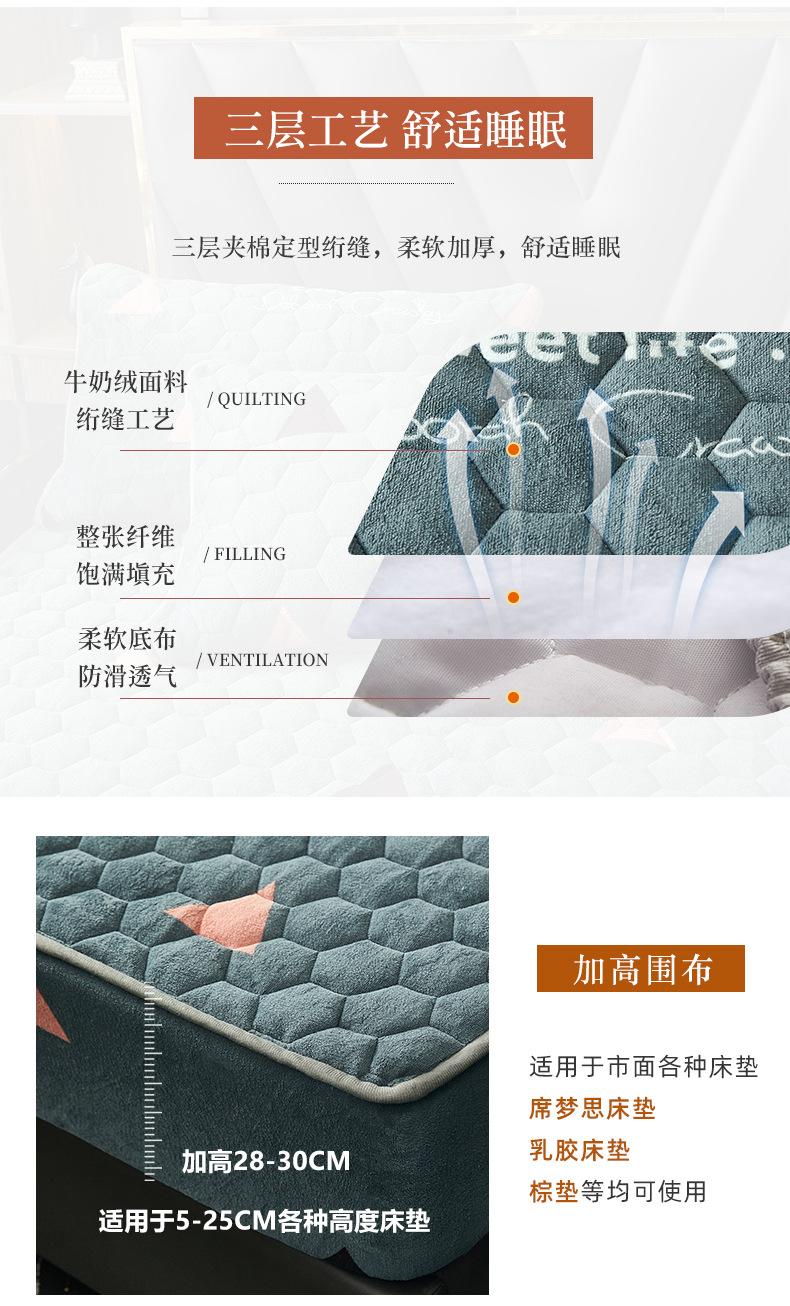 Funda de cama acolchada de terciopelo de leche, cálida, gruesa, antideslizante, para comercio exterior transfronterizo, funda protectora Simmons, funda de colchón