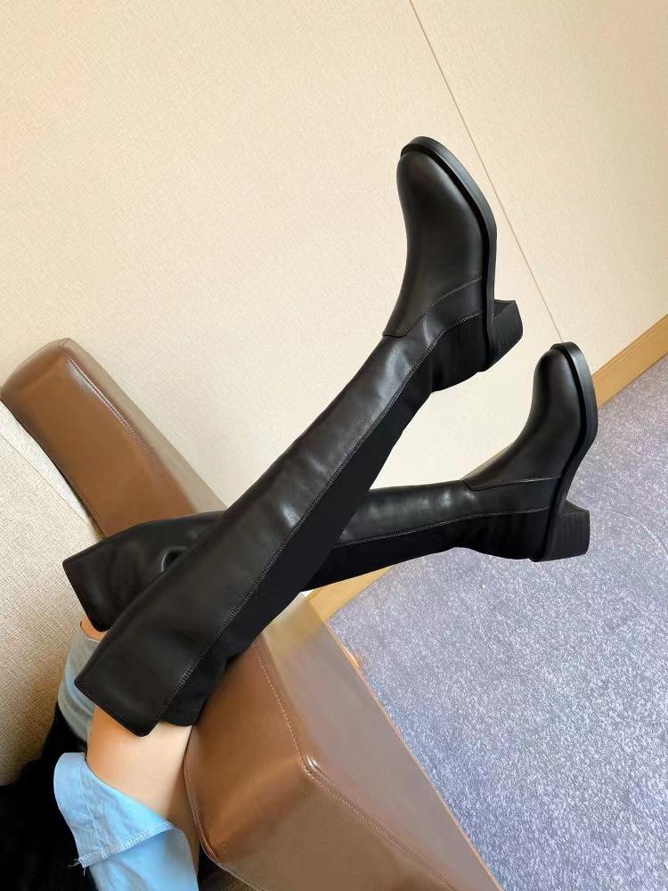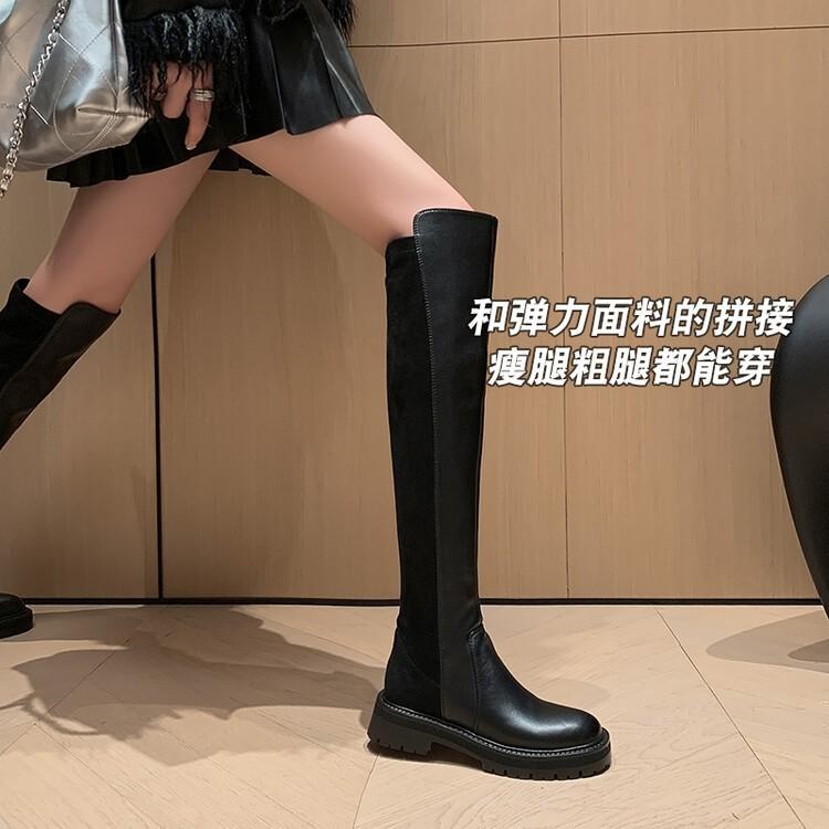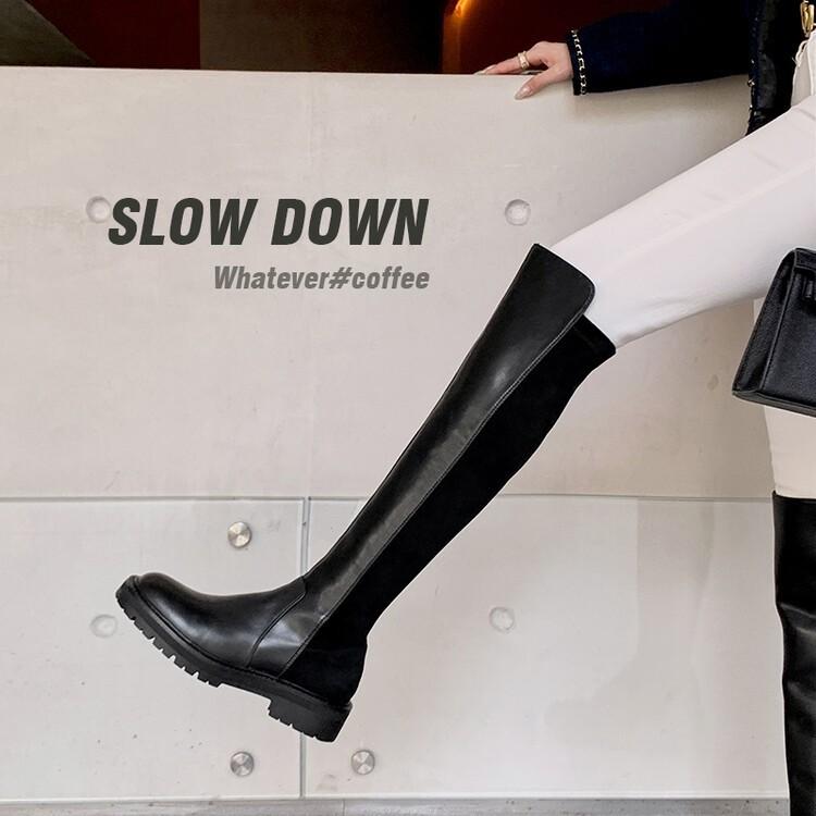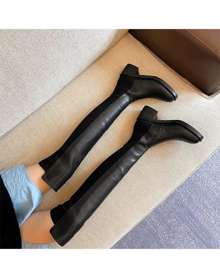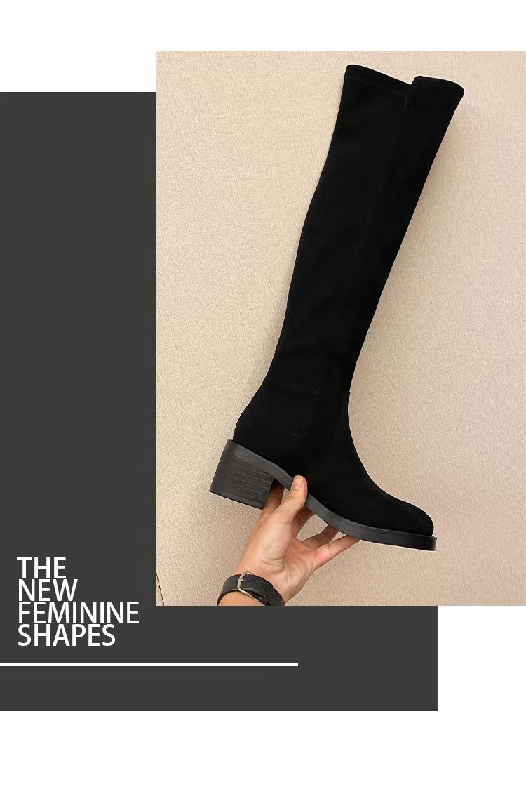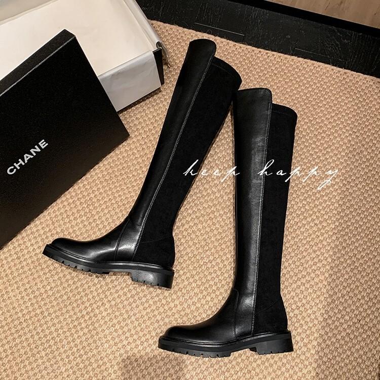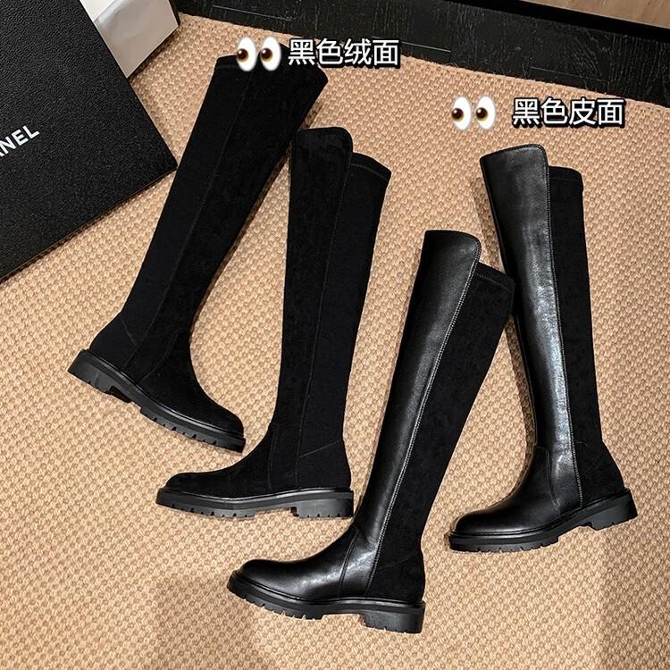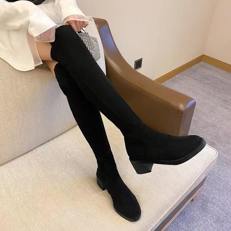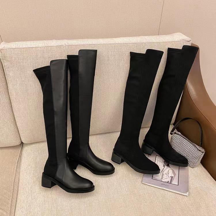 Compra Botas Versátiles de Caña Alta por Encima de la Rodilla Serie Sw5050 Otoño 2024 Zapatos de Mujer Tacón Bajo Empalmadas Caña Alta Forradas de Borrega Botas de Mujer al por mayor en Joom.pro