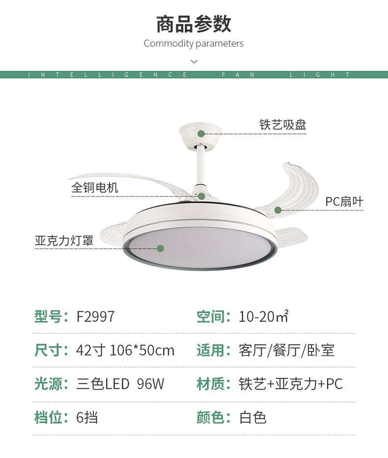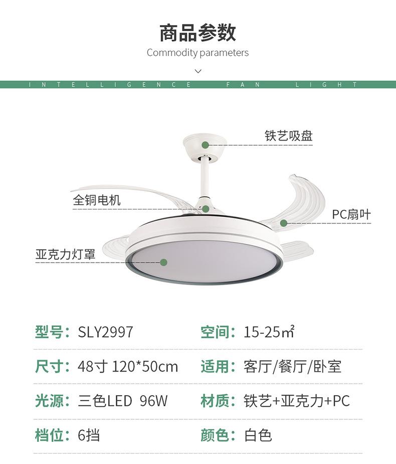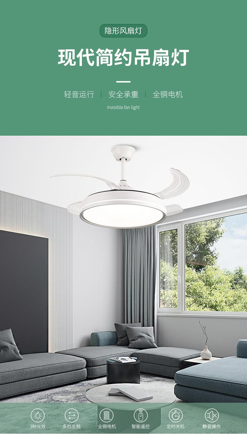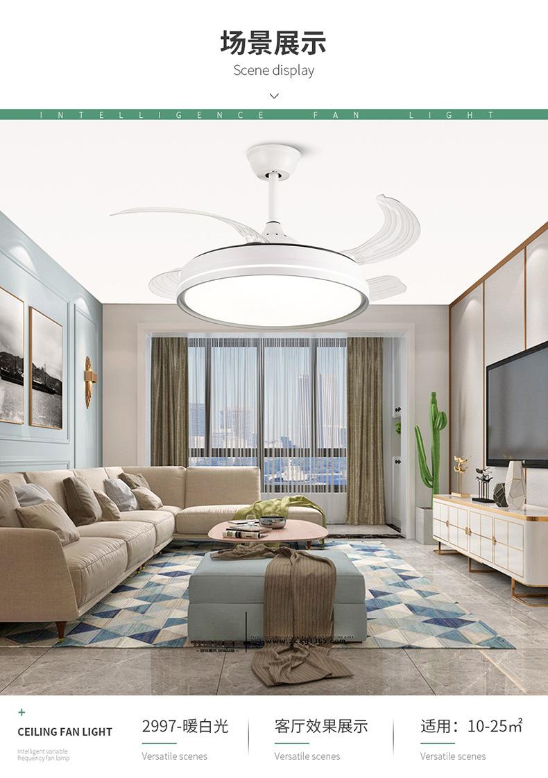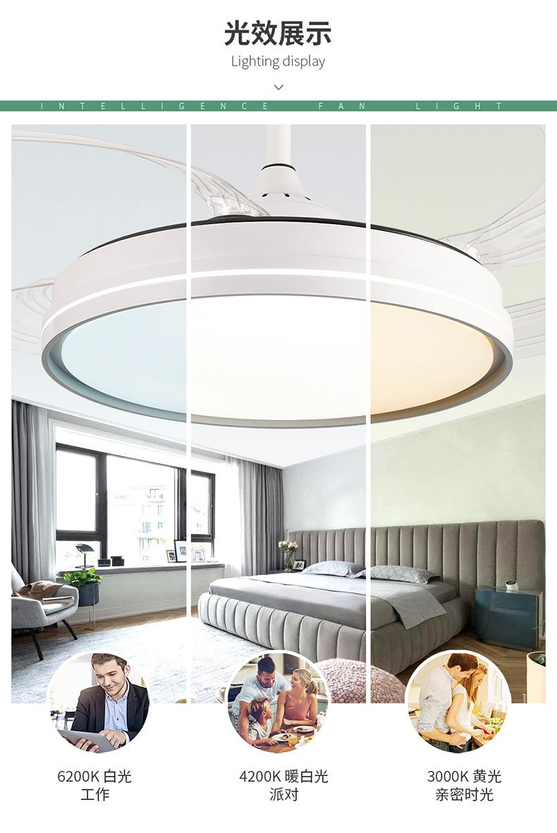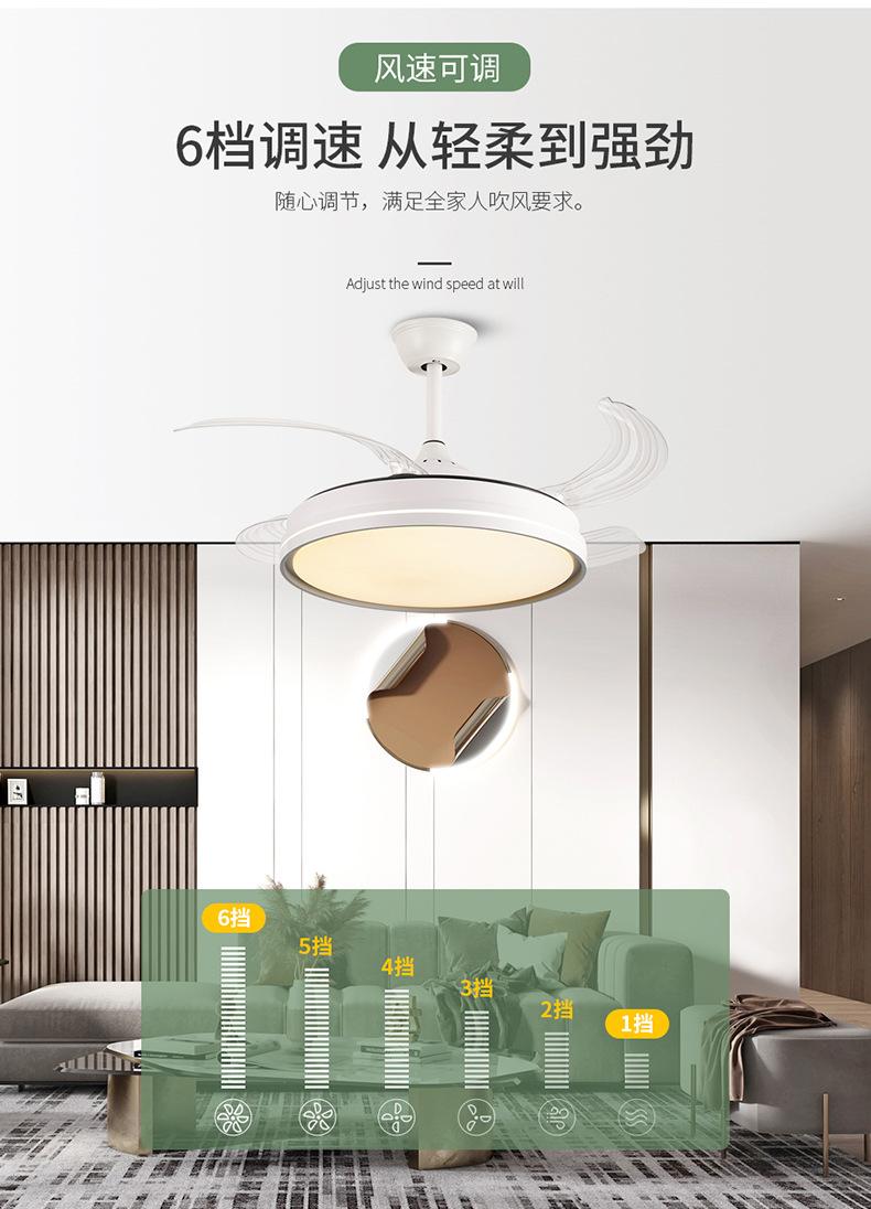 Lámpara de ventilador invisible para sala de estar, comedor, lámpara de ventilador de techo 2023, nueva lámpara de techo con ventilador eléctrico integrado para el hogar, conversión de frecuencia de seis velocidades