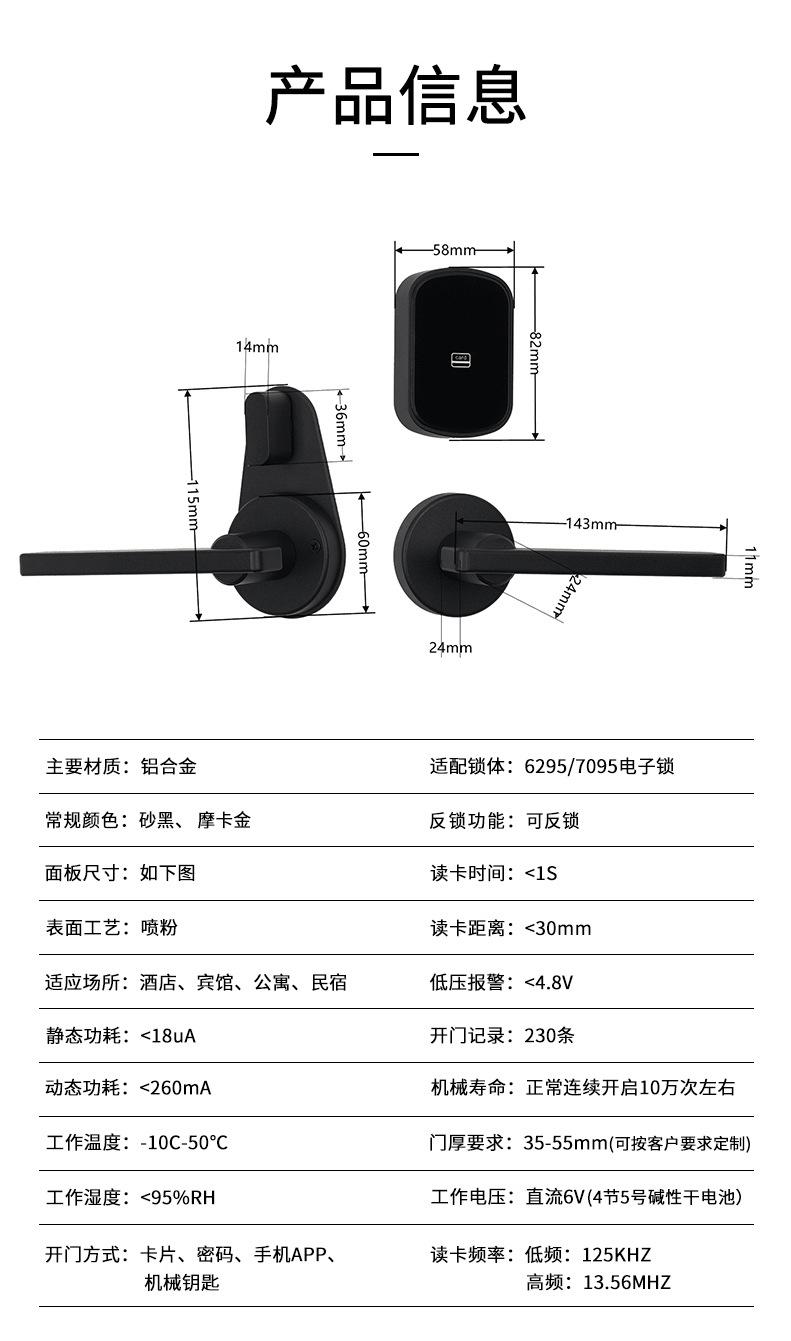 Cerradura de puerta de hotel, cerradura de tarjeta de hotel, cerradura de contraseña de aplicación, cerradura de puerta de madera de inducción inteligente, cerradura electrónica dividida para apartamento B & B
