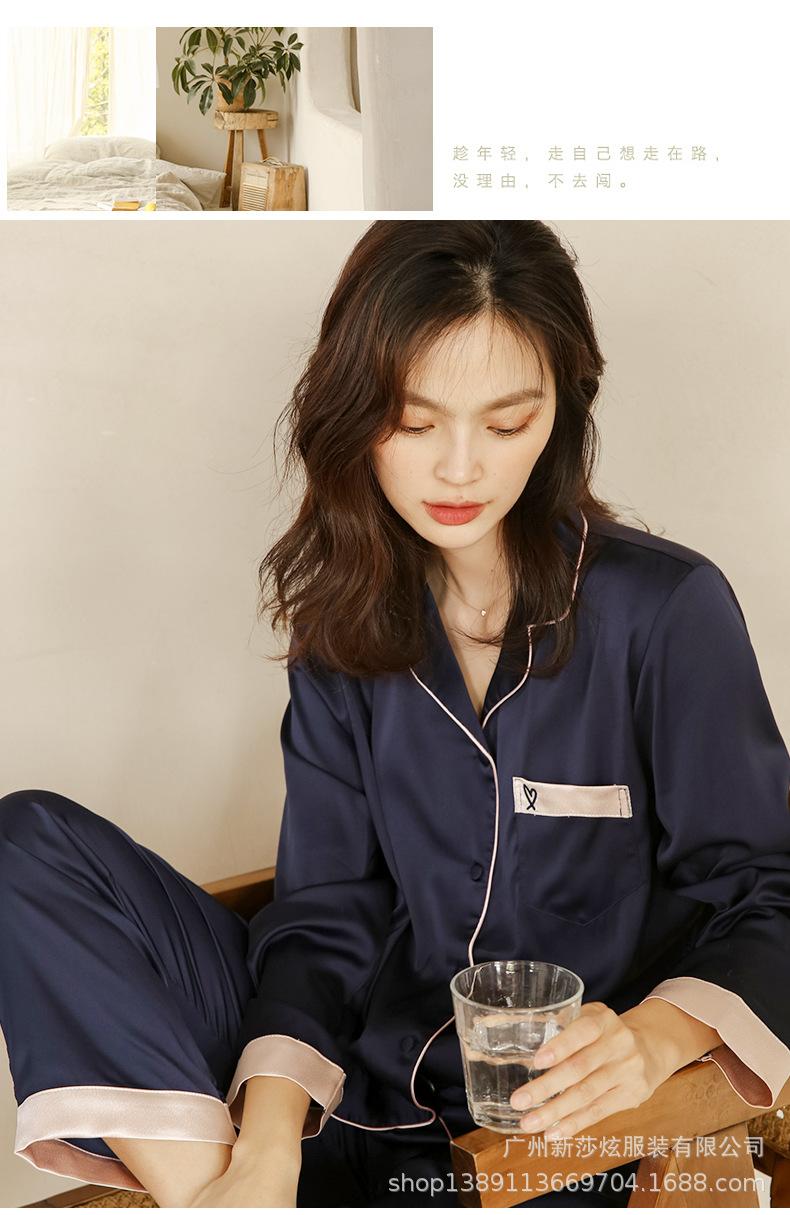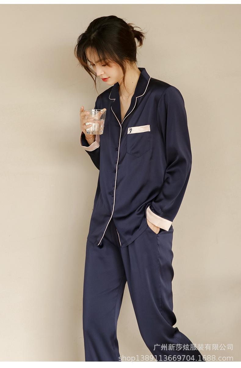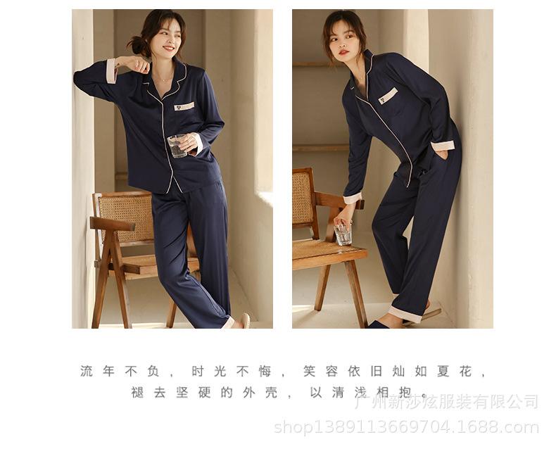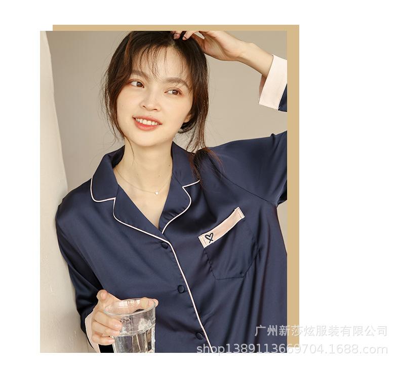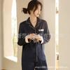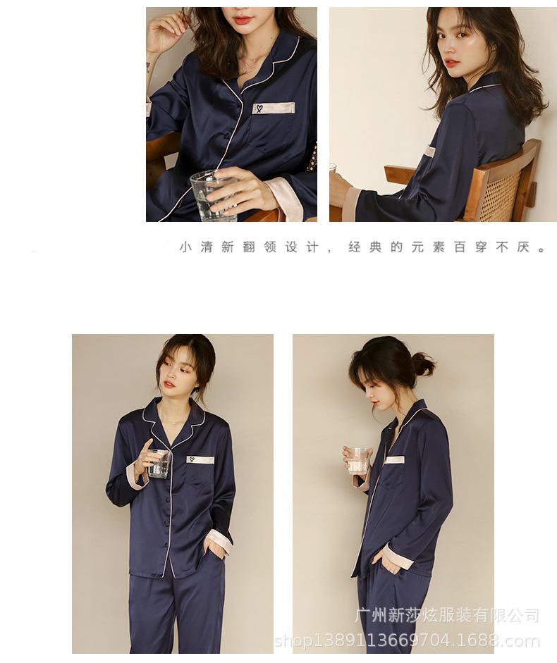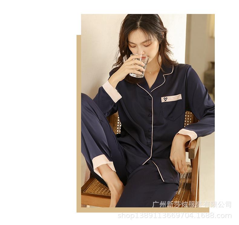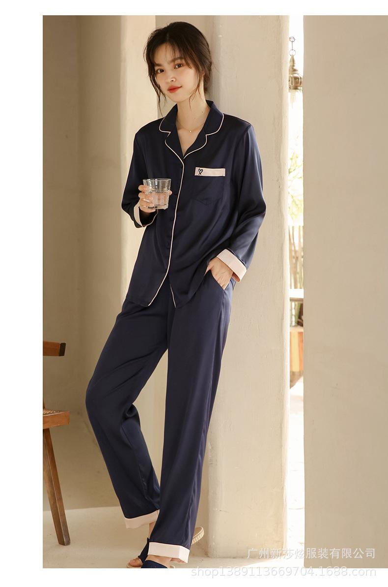 Pijamas de mujer de primavera y otoño, nuevos, finos, transpirables, de seda helada, de manga larga, conjunto de dos piezas, ropa informal dulce y amorosa para el hogar.