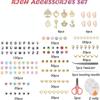 60,000 piezas de cuentas de semillas de vidrio de 2 mm, cuentas de letras, cuentas de corazón, cuentas de carita sonriente, cuentas de ojo turco, conchas blancas, diferentes estilos de accesorios dorados, anillos de salto, hebillas, cierres de langosta, tijeras, pinzas, agujas para enhebrar e hilo de cristal