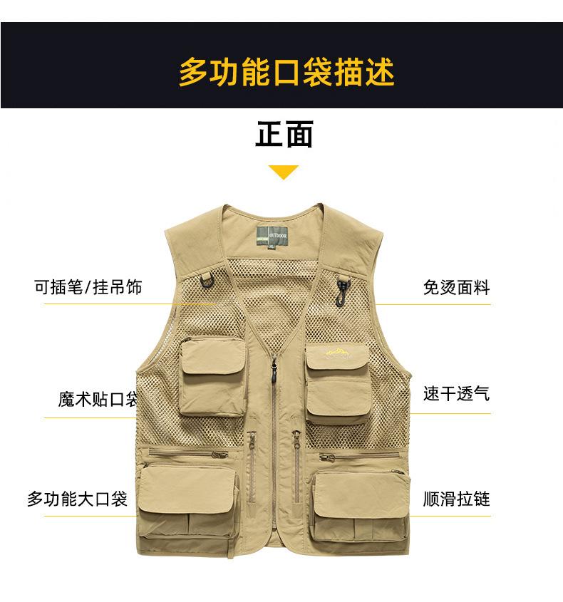 | Chaleco publicitario, logotipo impreso personalizado, mono de fotografía, chaleco de trabajo multibolsillos para reporteros y periodistas, comercio exterior transfronterizo.¥37.50 | Chaleco multibolsillos de secado rápido para fotografía de reportero, ropa de trabajo personalizada, chaleco de pesca de gran tamaño, chaleco con logotipo impreso para hombre48,50 ¥ | Chaleco de trabajo personalizado con múltiples bolsillos para fotografía de reportero y publicidad, ropa de trabajo para voluntarios, con logotipo personalizado.13,00 ¥ | ||