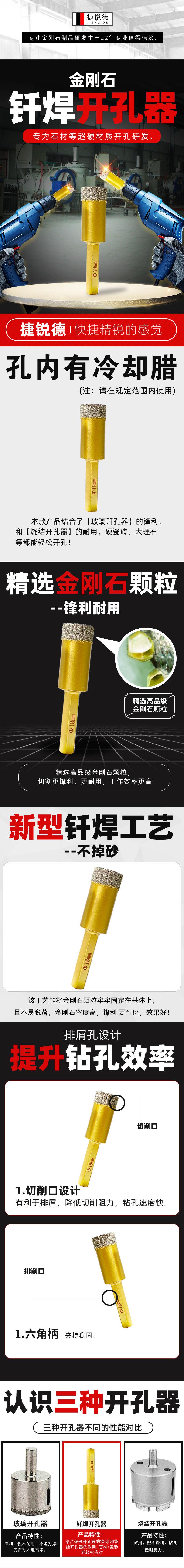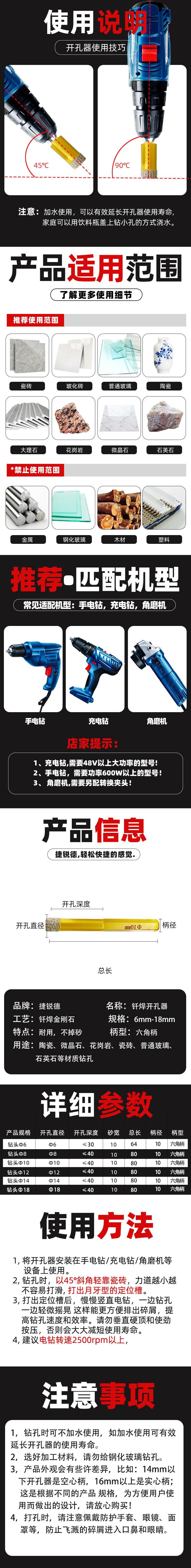 Taladro eléctrico manual con broca de diamante soldado para perforar en seco, para baldosas de mármol, cerámica y vidrio.