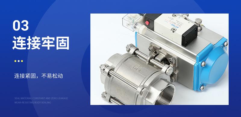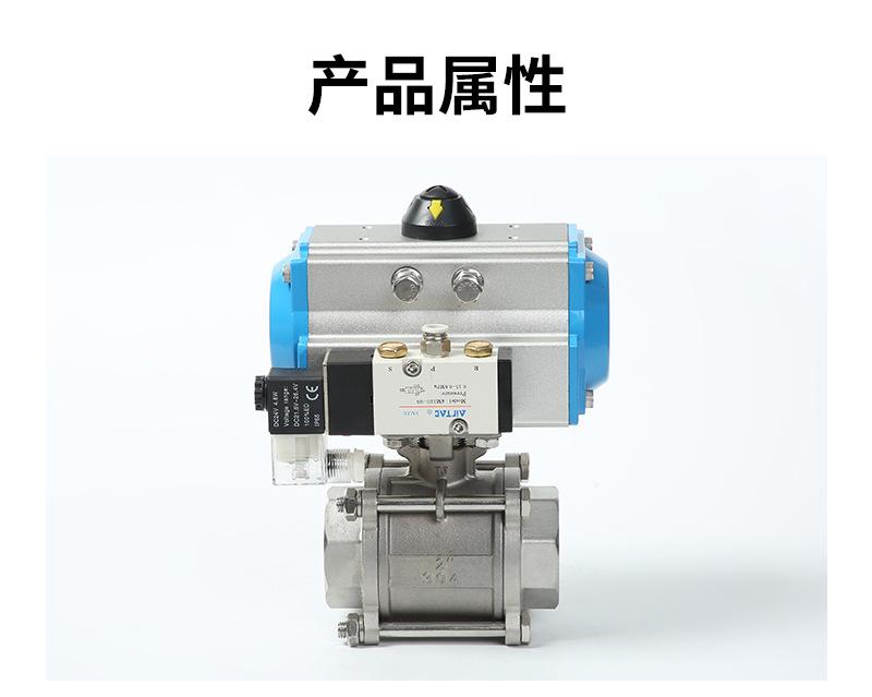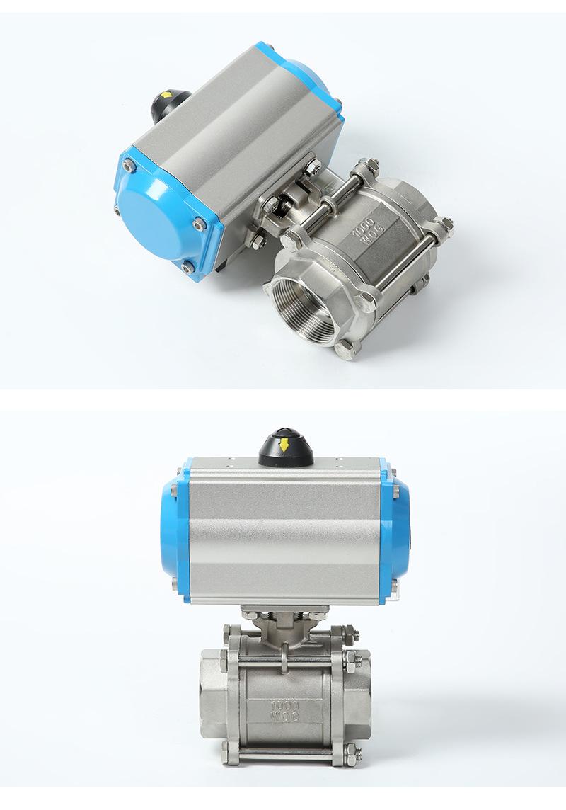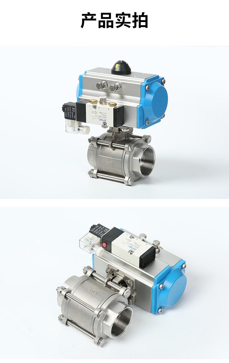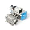Válvula de bola de tres piezas con rosca neumática y solenoide, válvula de bola industrial recta de acero inoxidable 304, venta al por mayor de fábrica