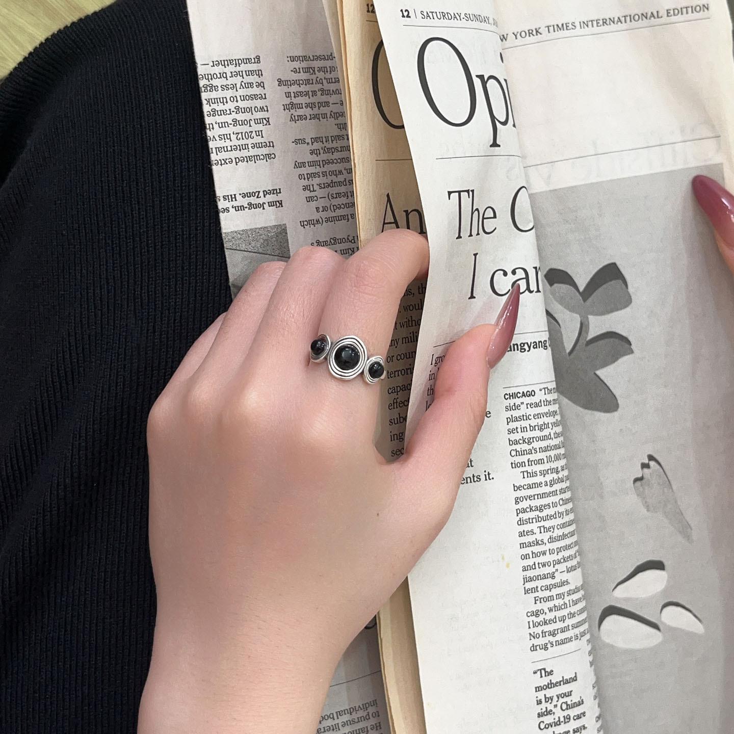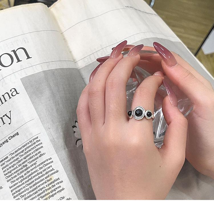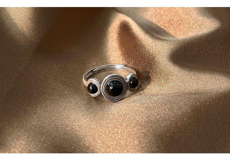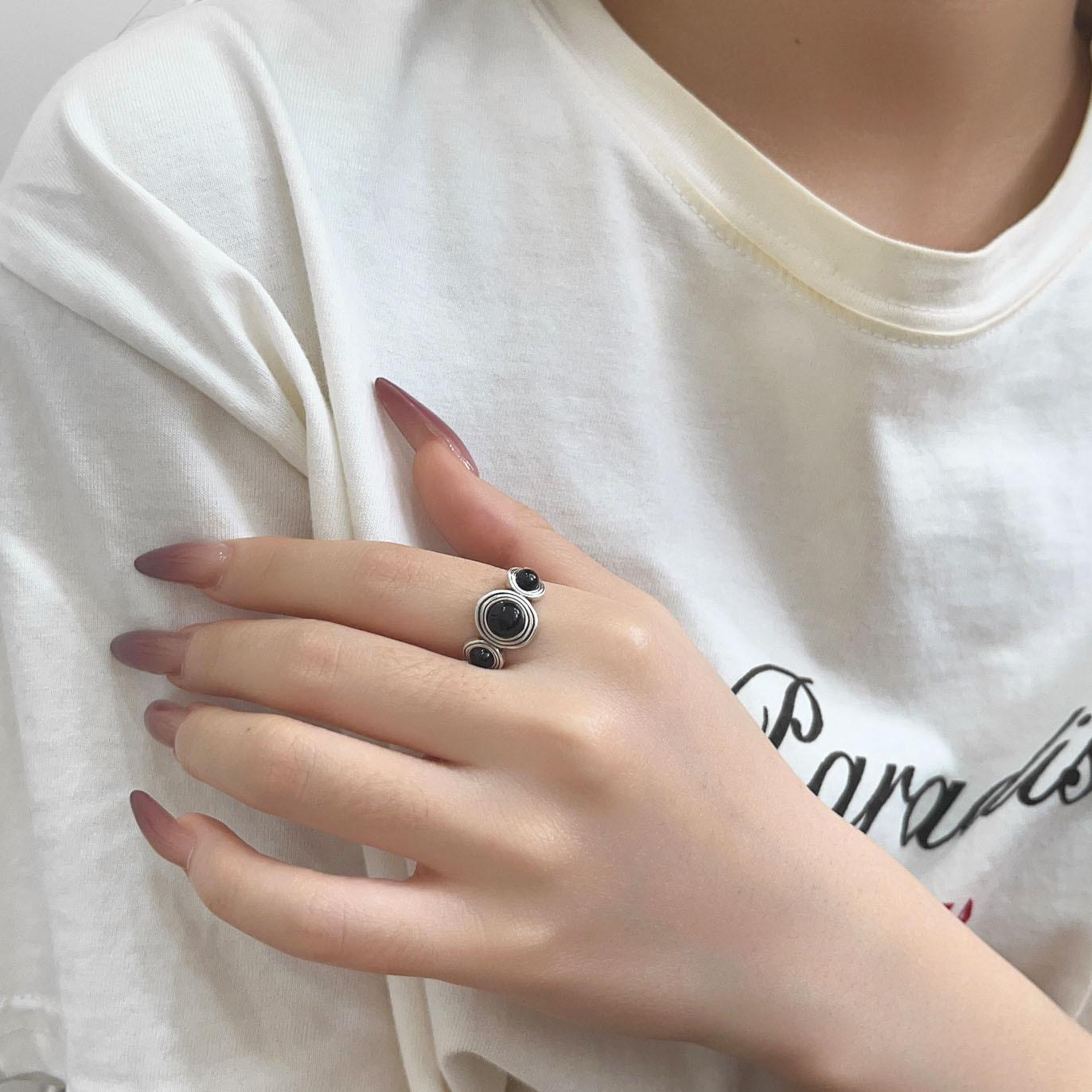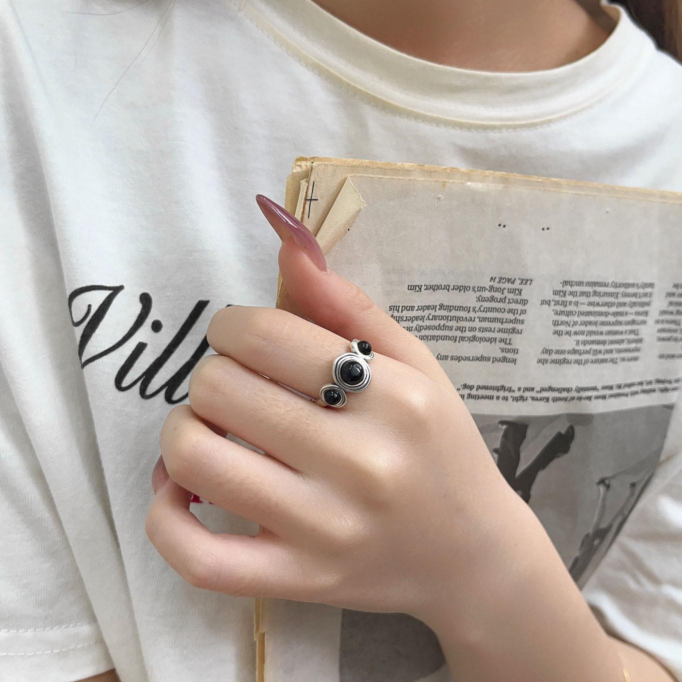 Anillo abierto de plata de ley S925 Ruitai con ónix negro, ajustable, de alta gama, para mujer, con diseño de nicho, combinable.