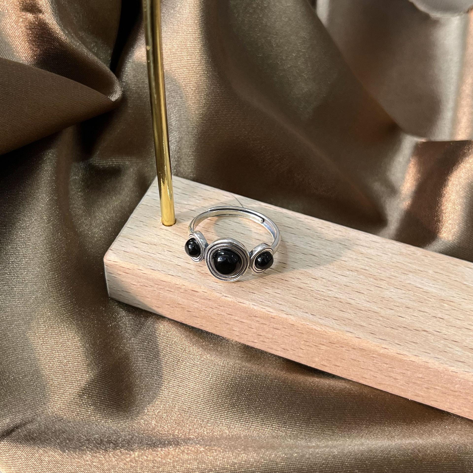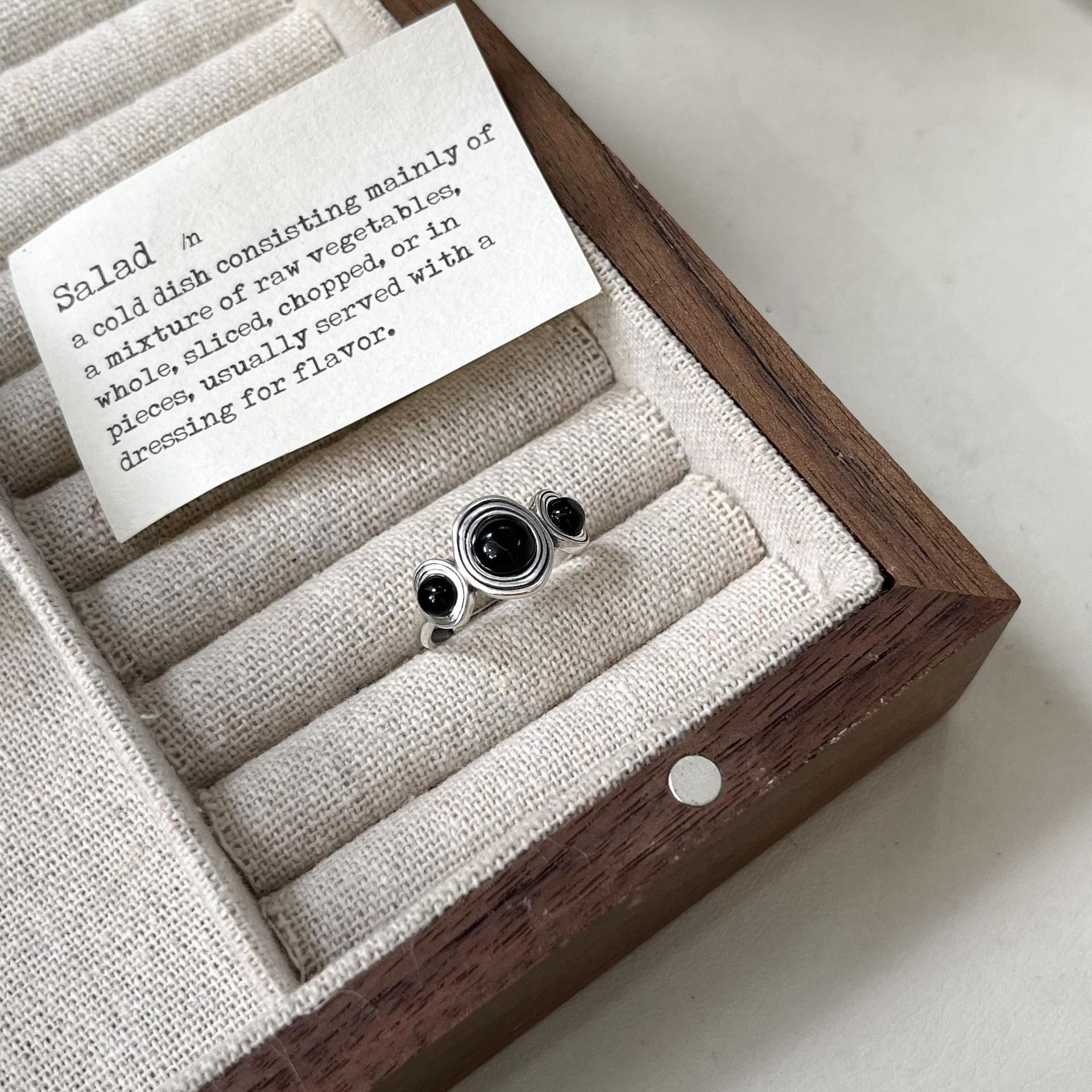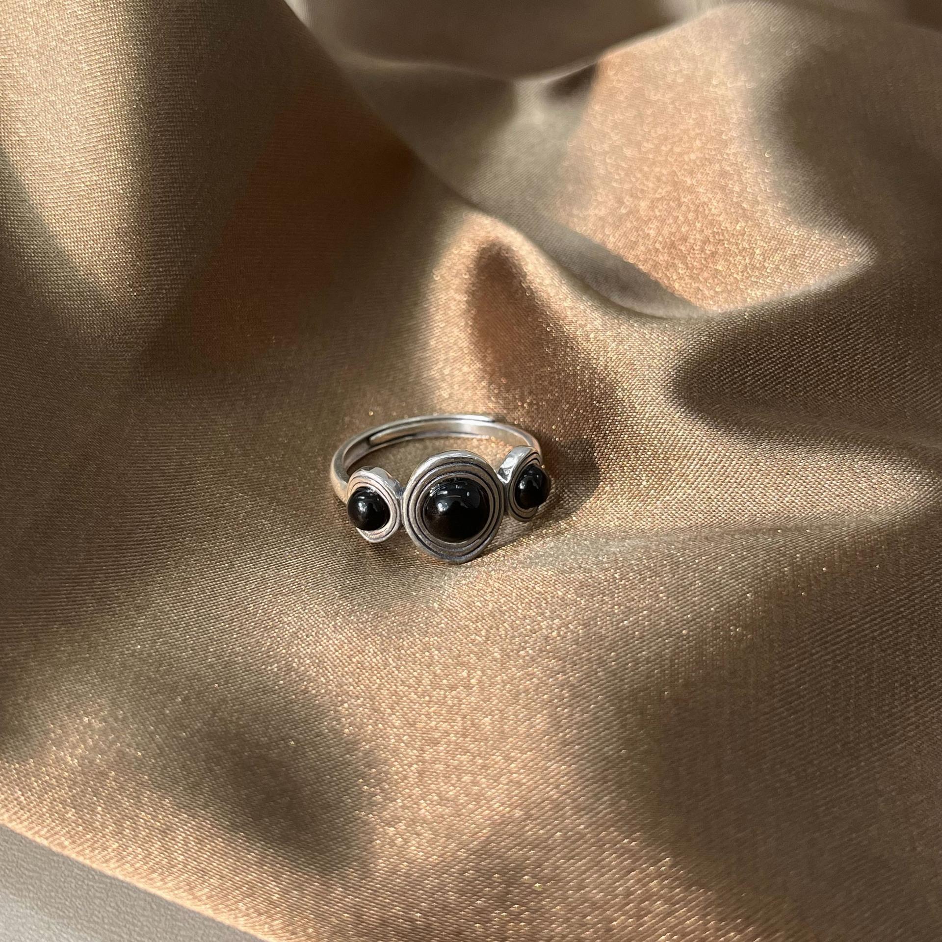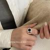 Anillo abierto de plata de ley S925 Ruitai con ónix negro, ajustable, de alta gama, para mujer, con diseño de nicho, combinable.