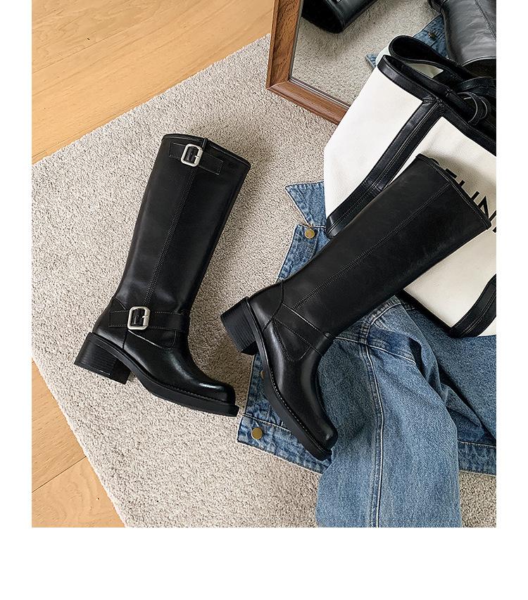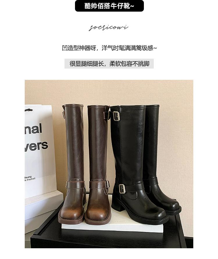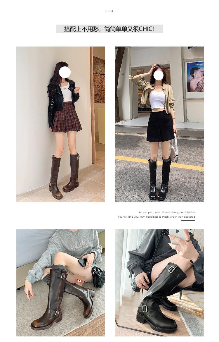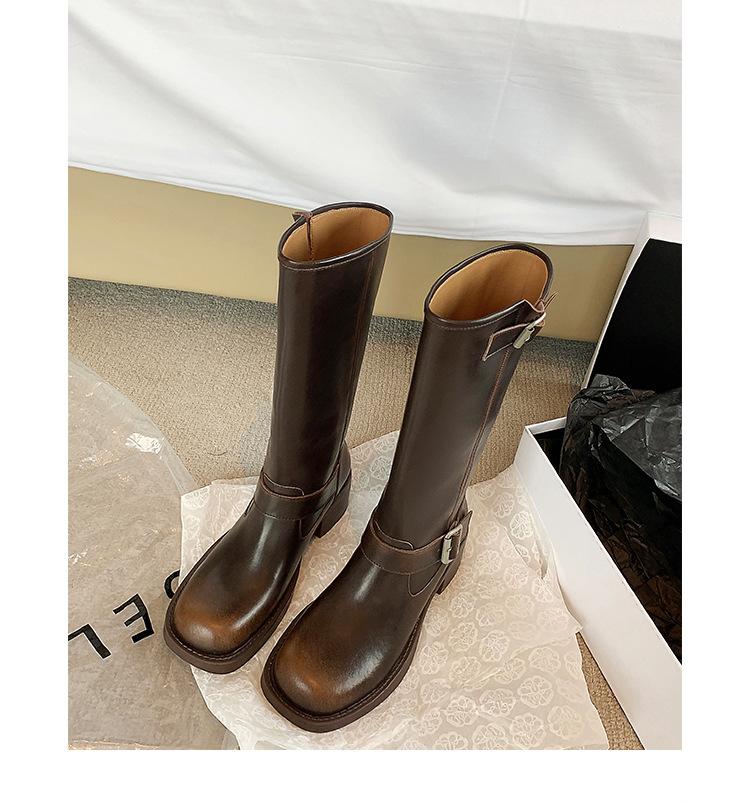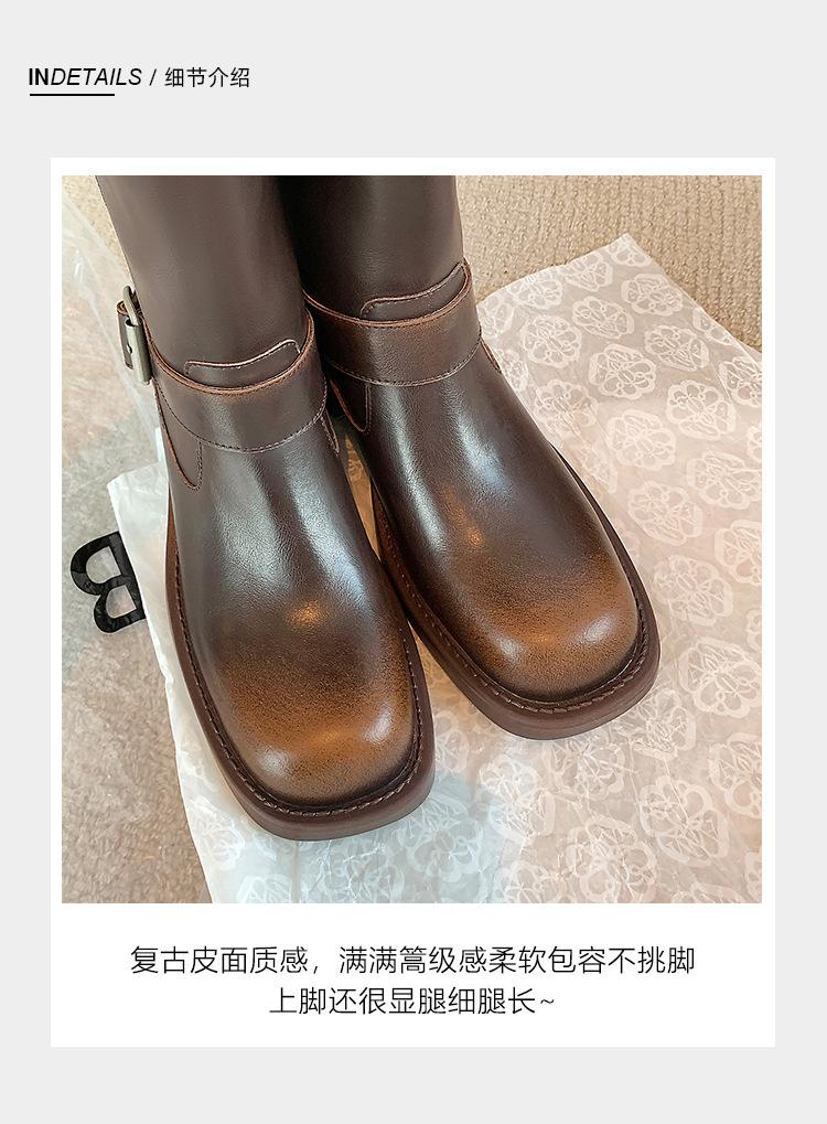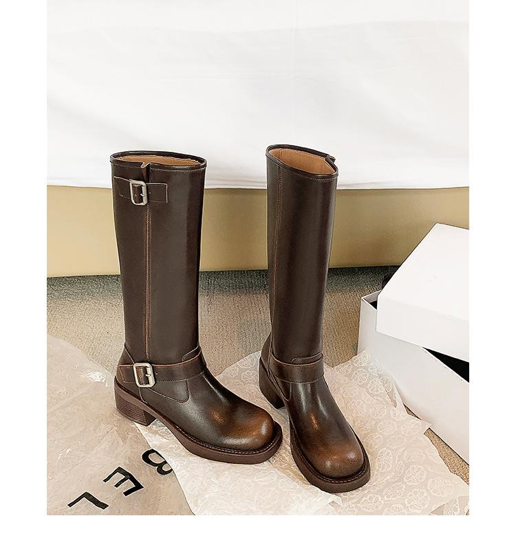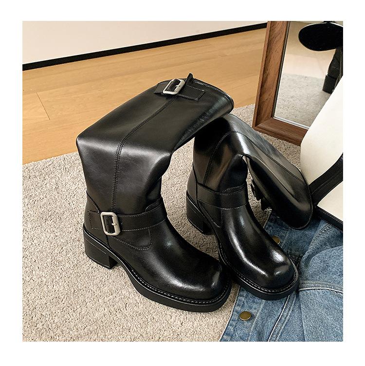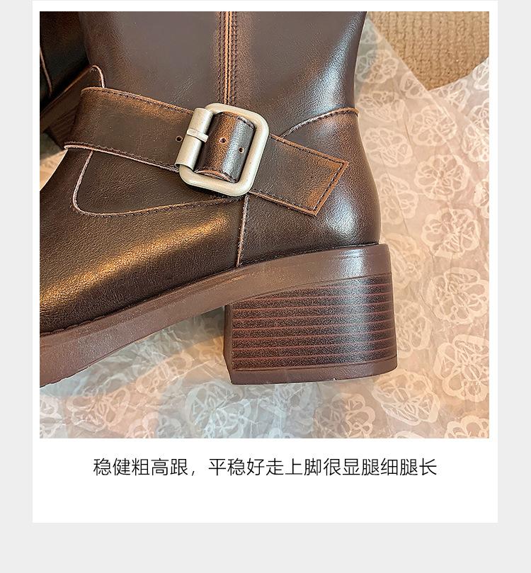 Compra Versión alta ~ otoño 2024 nuevo cuero viejo retro botas de caballero mujer tacón grueso hebilla botas de tacón grueso mujer al por mayor en Joom.pro