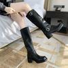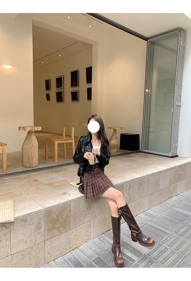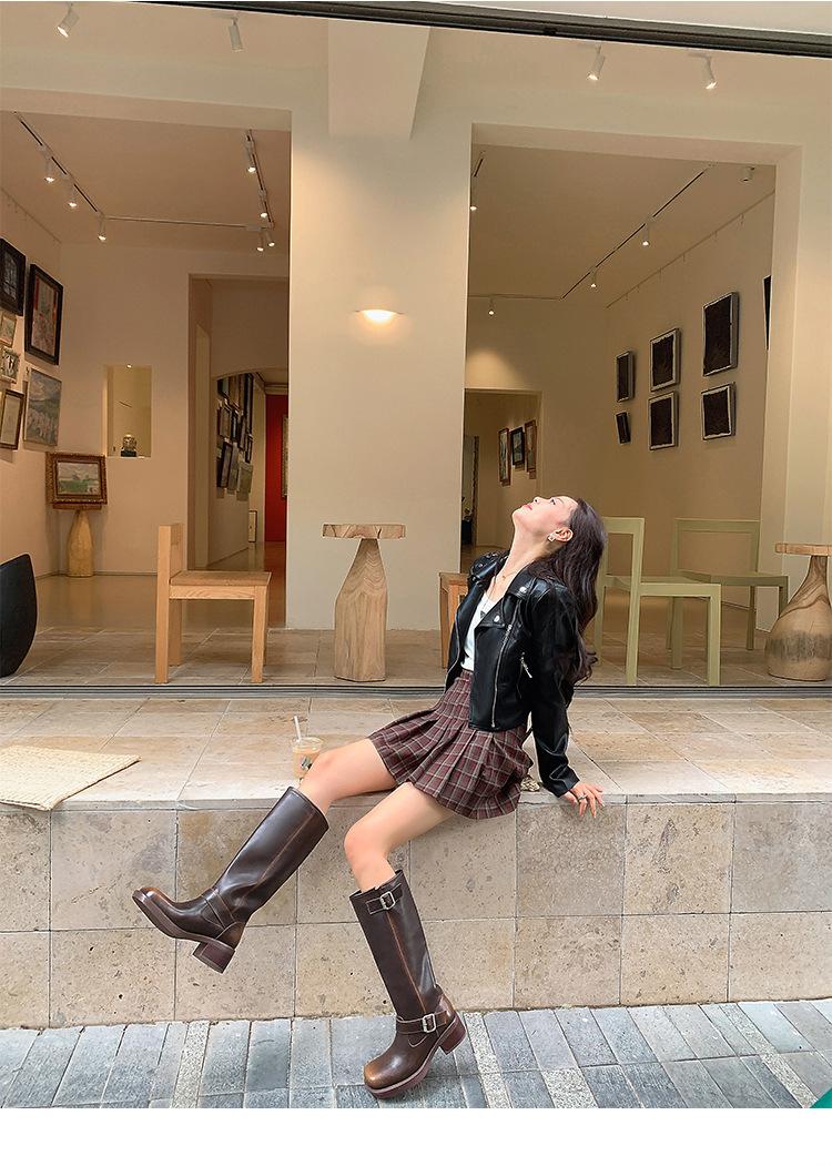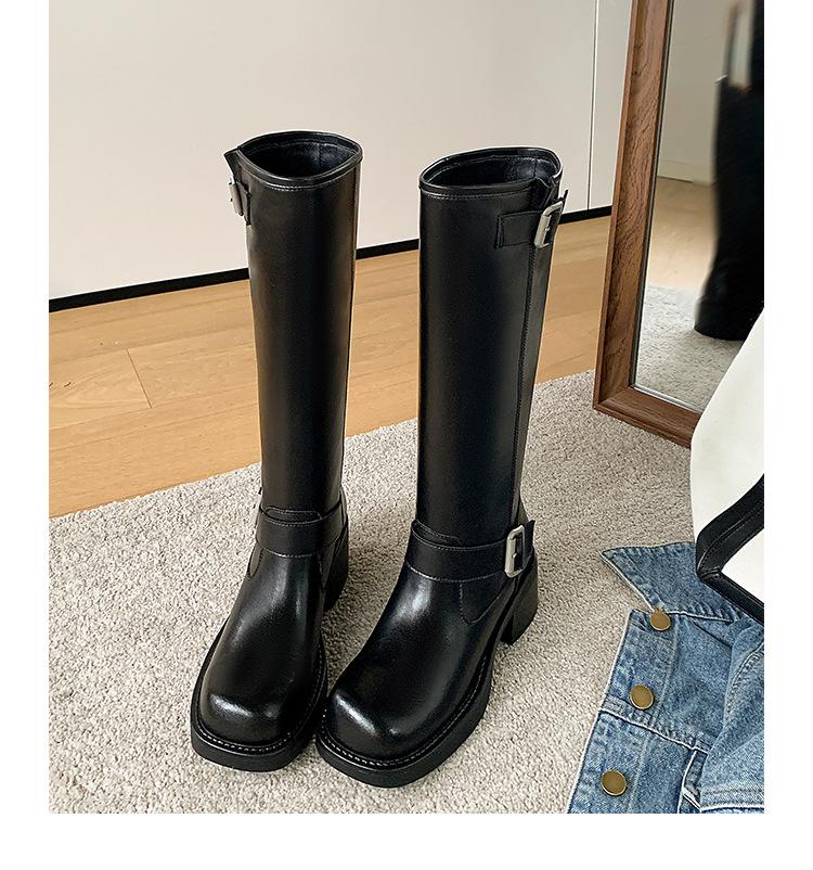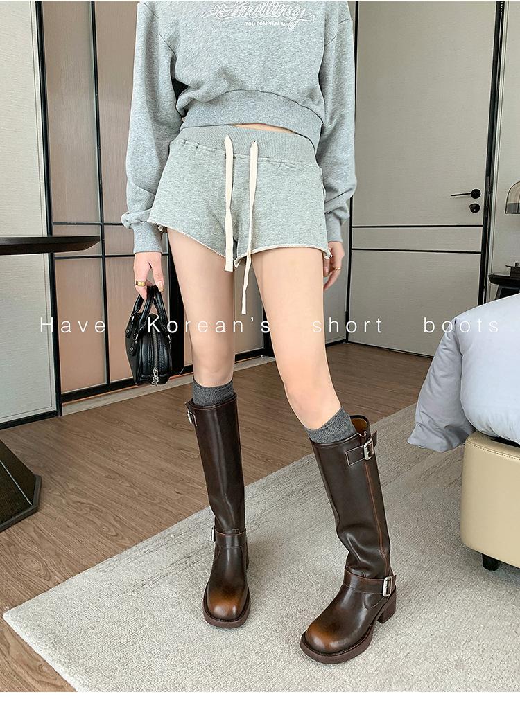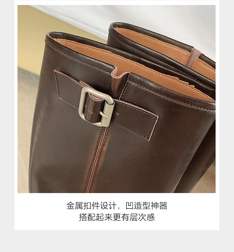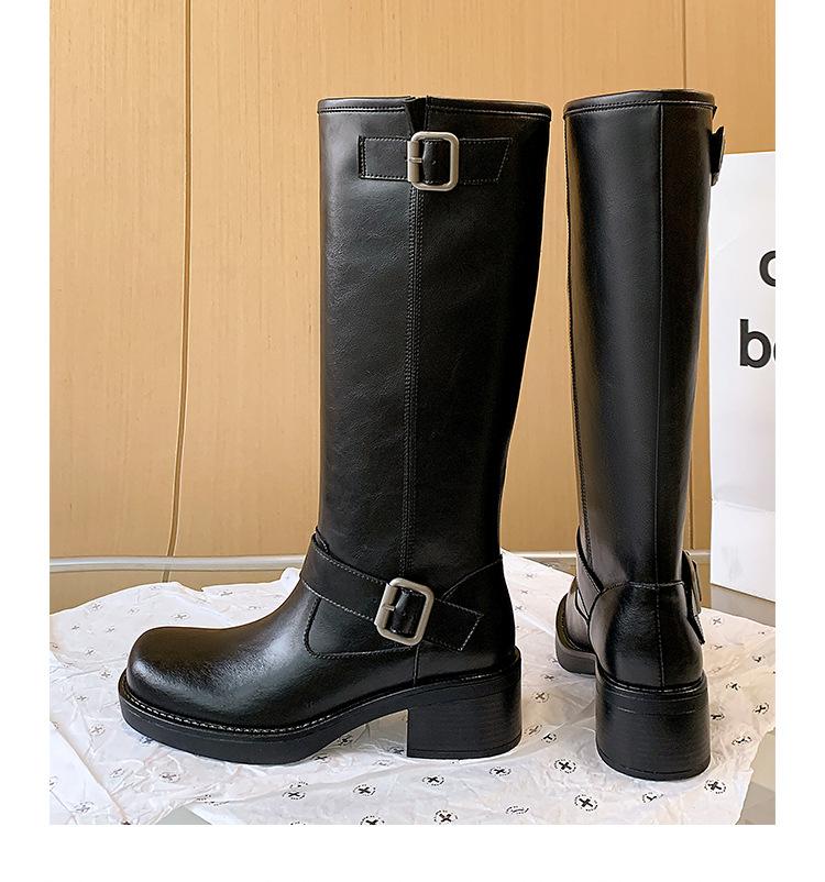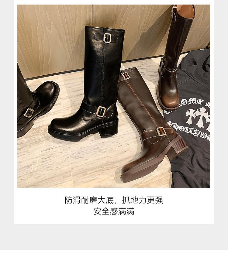 Compra Versión alta ~ otoño 2024 nuevo cuero viejo retro botas de caballero mujer tacón grueso hebilla botas de tacón grueso mujer al por mayor en Joom.pro