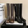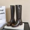 Versión alta ~ otoño 2024 nuevo cuero viejo retro botas de caballero mujer tacón grueso hebilla botas de tacón grueso mujer