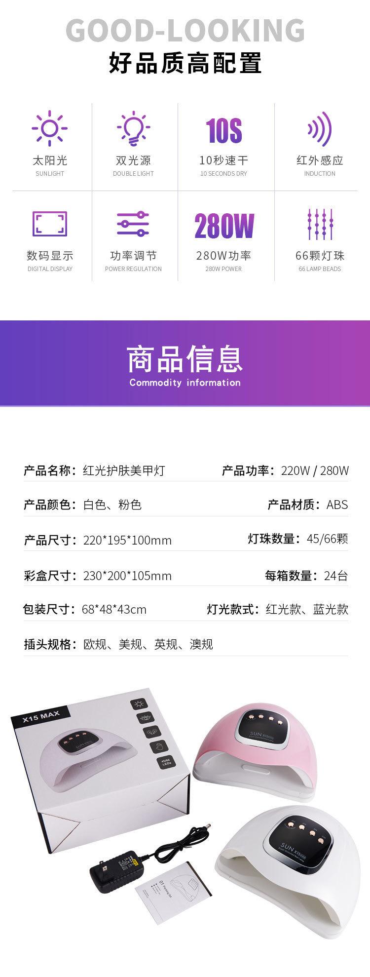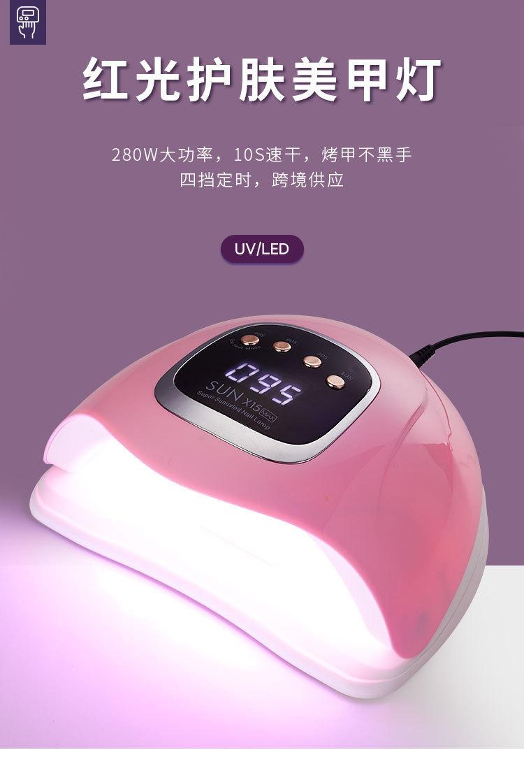 Lámpara de uñas de alta potencia de 280 W, máquina de fototerapia, lámpara de fototerapia inteligente con temporizador UV, luz roja, lámpara de secado rápido para hornear uñas, transfronterizo