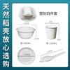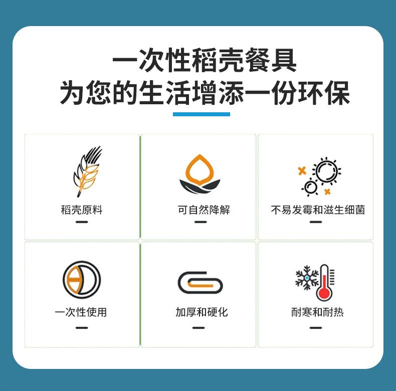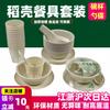 Set de Vajilla Desechable para Camping, Set de Cuatro Piezas de Tazón y Palillos Biodegradables, Set de Tres Piezas de Tazón de Cáscara de Arroz de Grado Alimenticio