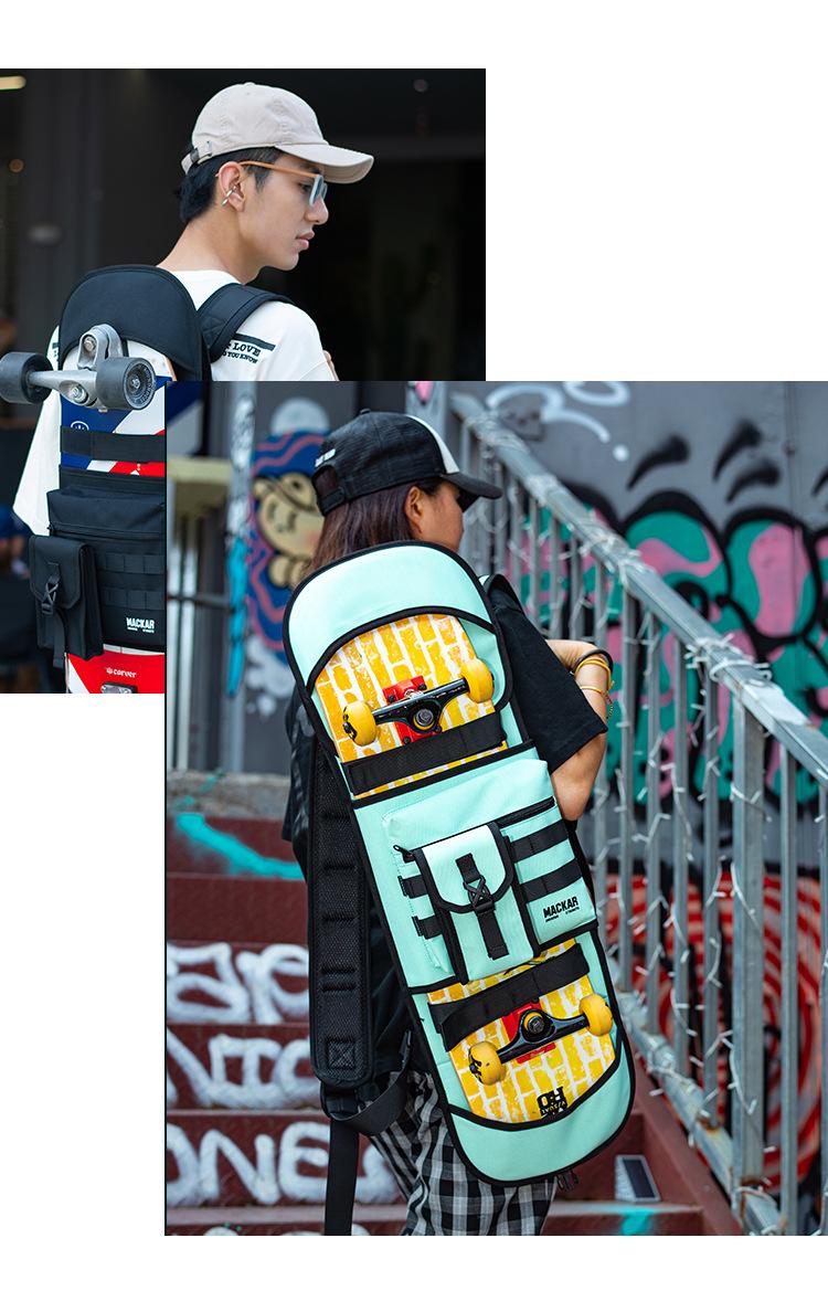 Bolsa para patineta eléctrica de cuatro ruedas, bolsa para patineta de doble hombro, funda ligera para tabla de surf, bolsa para tabla deportiva de doble deformación, novedad de 2023