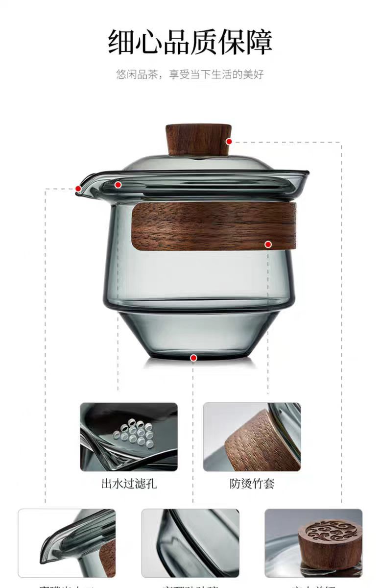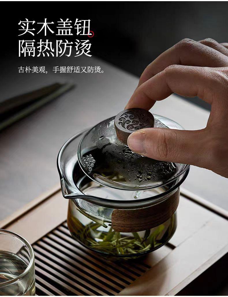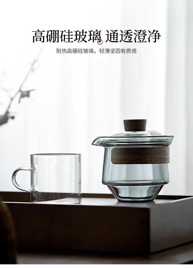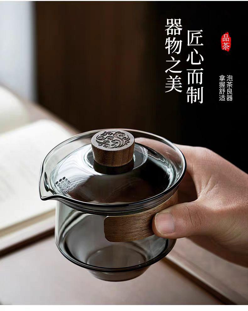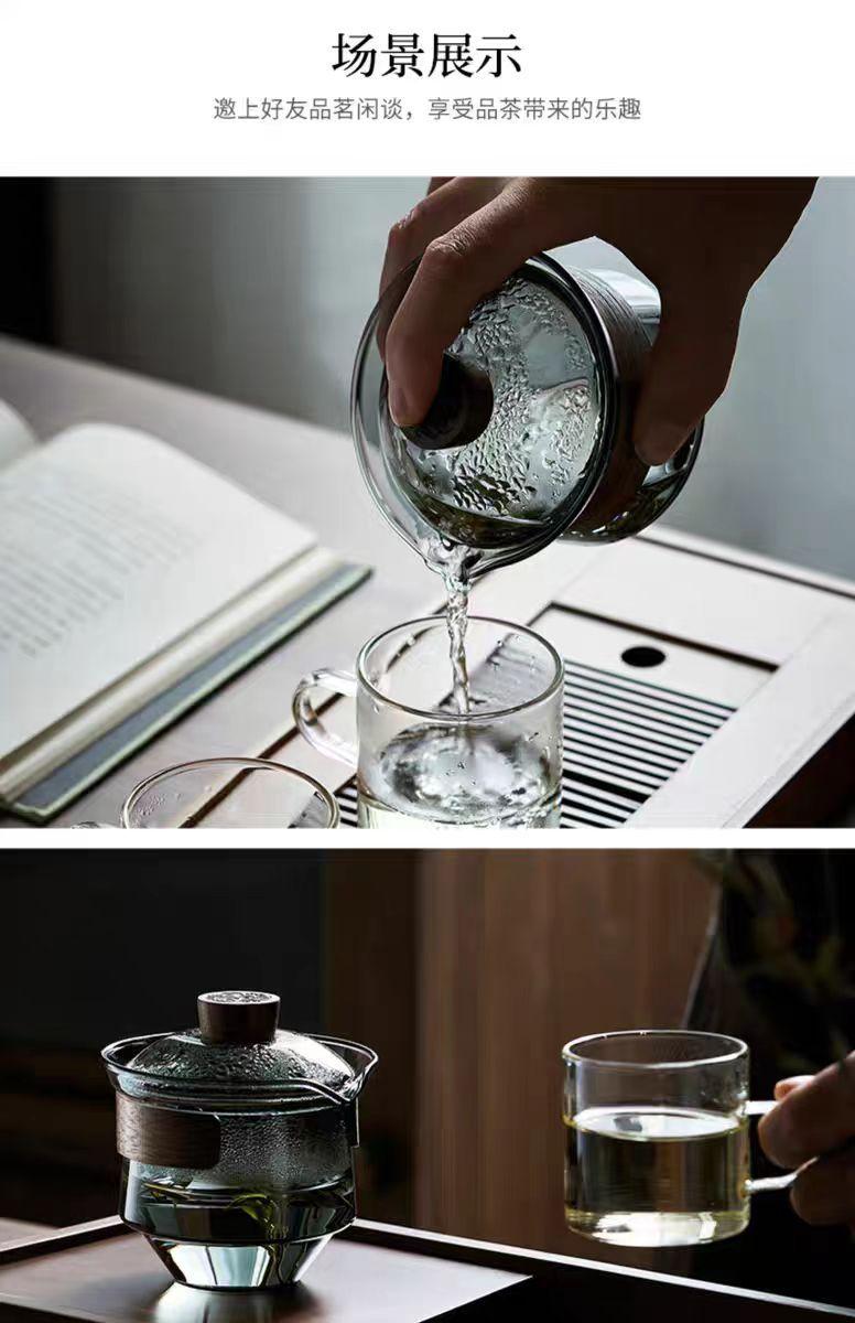 Juego de té de kung fu de vidrio de borosilicato de alta calidad, tetera transparente gruesa, taza de té grande hecha a mano