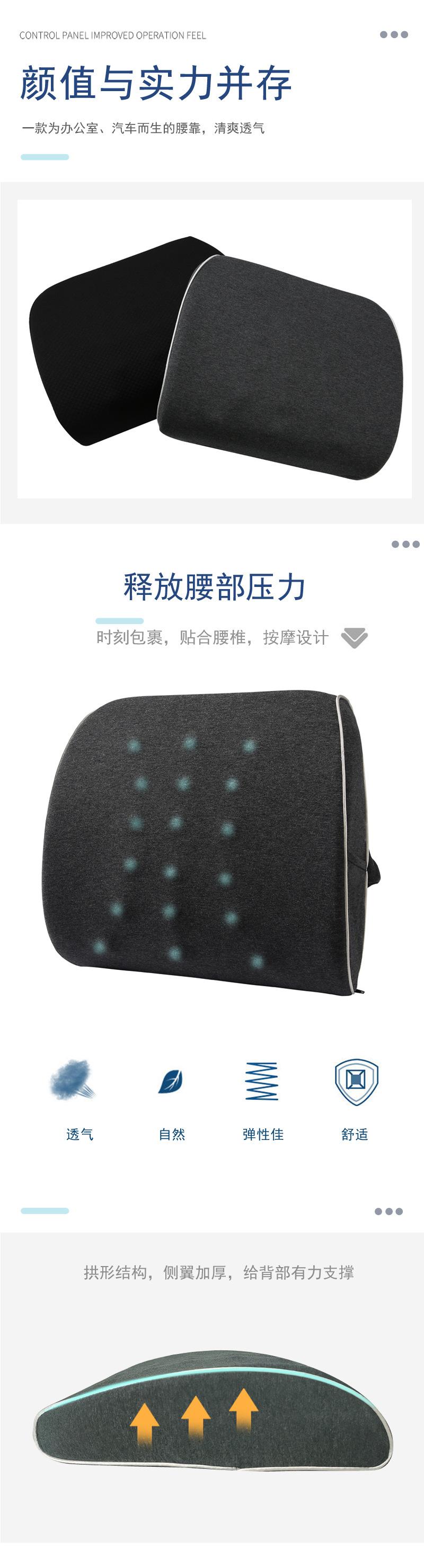 Almohada Lumbar de Espuma Viscoelástica Bordada Cojín de Oficina Respaldo para Asiento de Coche Silla de Masaje de Rebote Lento Cojín de Soporte Lumbar Empalmado