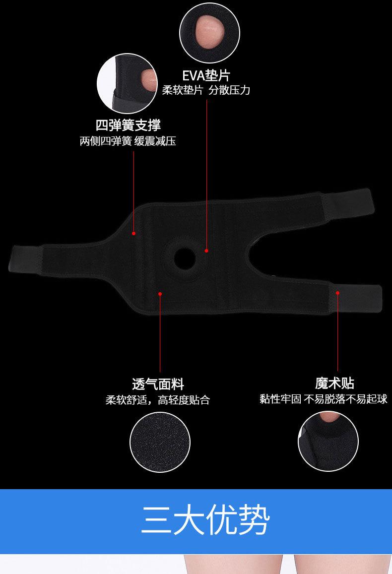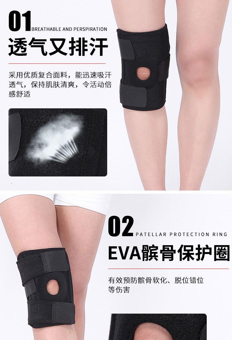 Características del producto: ajuste abierto, abertura frontal para estabilizar la rótula, 2 soportes a cada lado para amortiguar el impacto de la rodilla