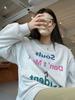 Suéter con estampado inglés de talla grande para mujer, suéter holgado adelgazante de cuello redondo y manga larga para chica gordita, top informal cómodo de estilo coreano