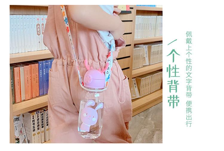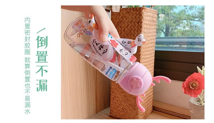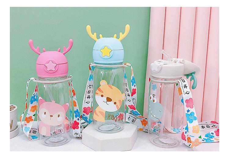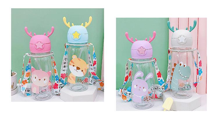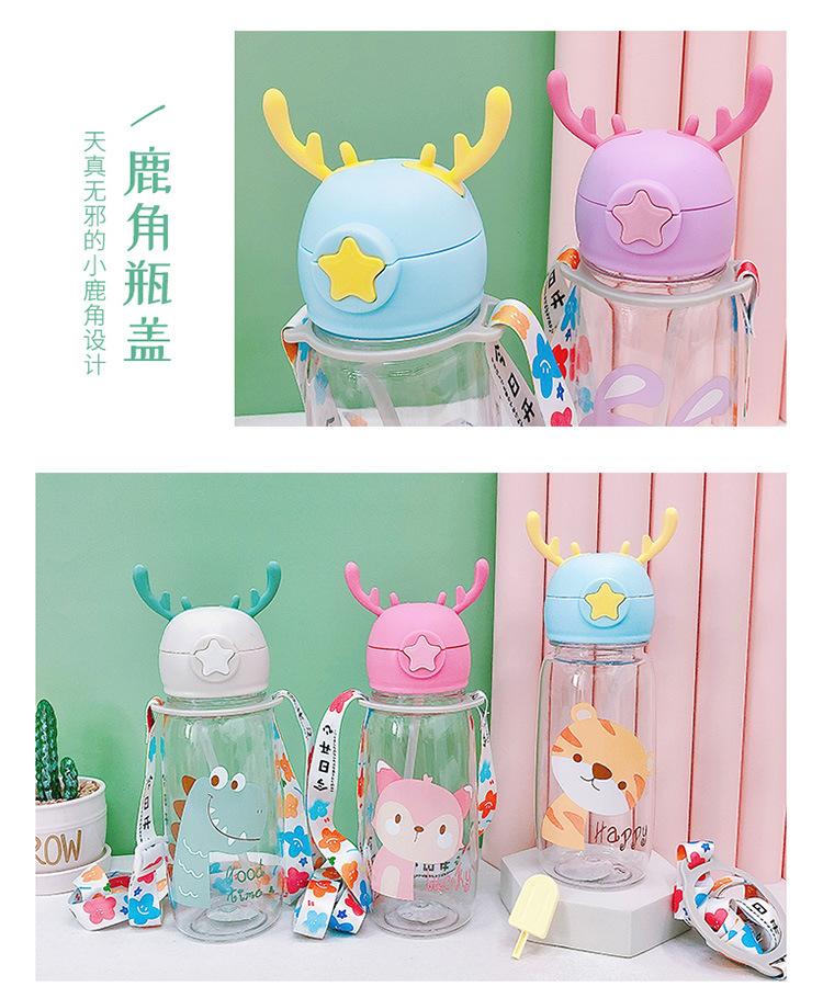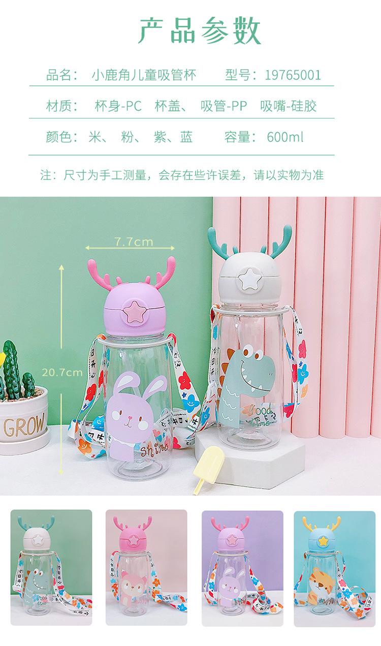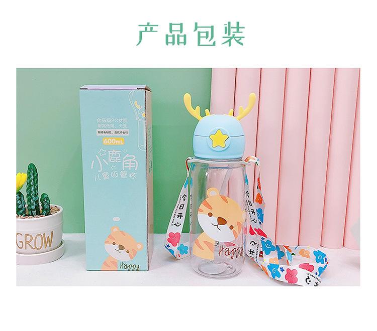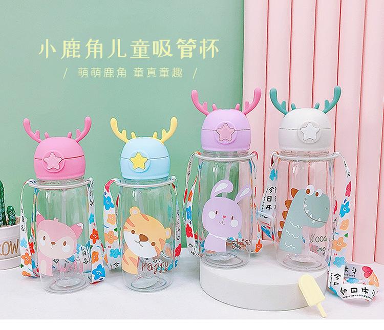 Taza de paja con forma de asta pequeña, taza de agua para niños de dibujos animados, taza de plástico de gran capacidad para exteriores, correa gratis, taza materna e infantil, venta al por mayor