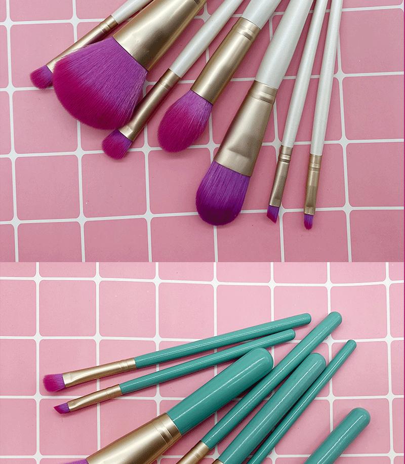 Nuevo juego de 7 brochas de maquillaje portátiles, brochas de sombras de alto brillo, brochas de maquillaje en polvo, brochas de maquillaje, accesorios de regalo de maquillaje