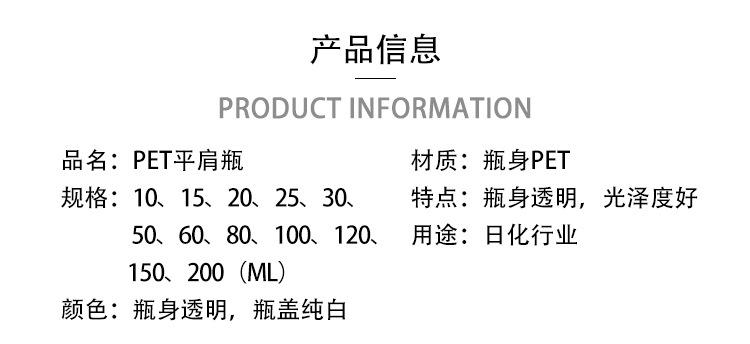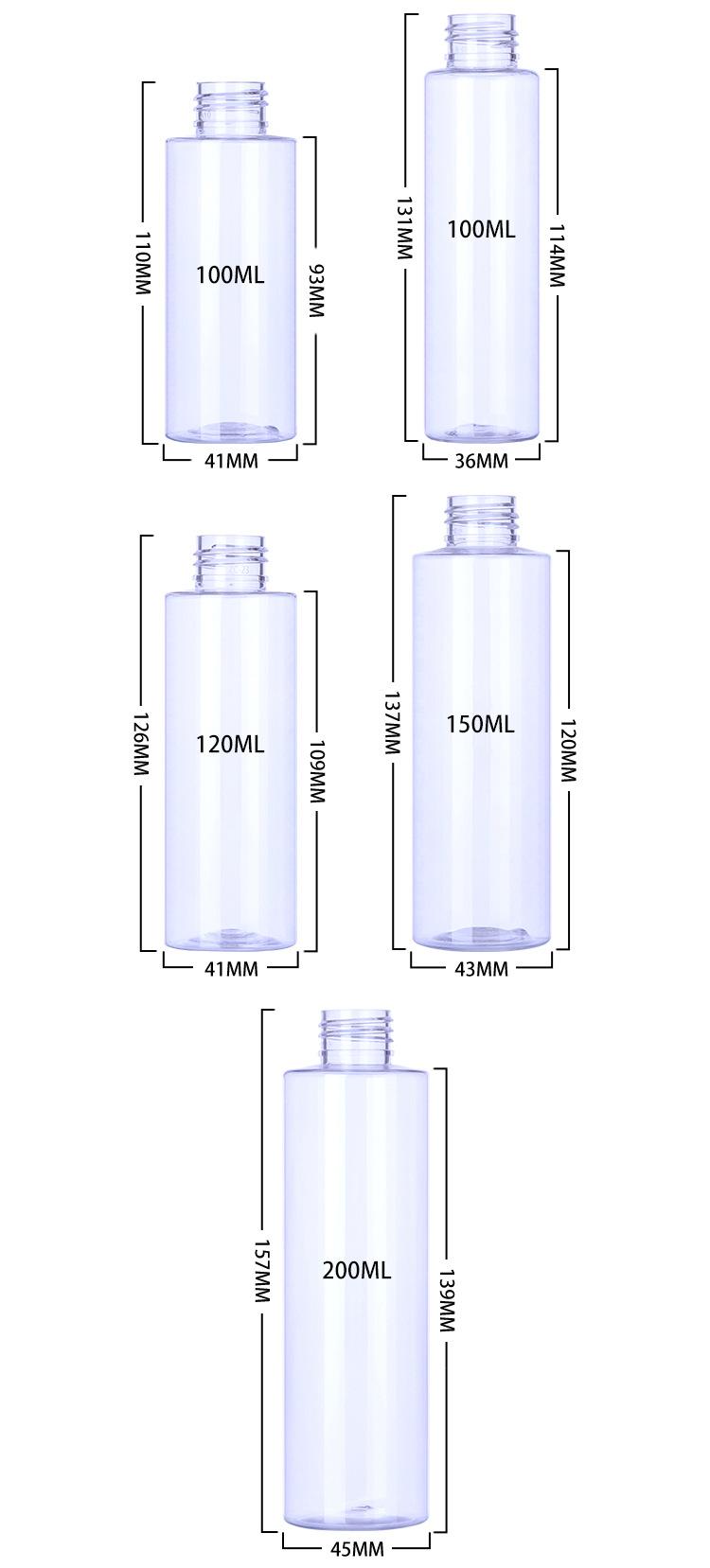 Botella de plástico de hombro plano al por mayor 100 150 200 ml tapa sellada reactivo de alcohol líquido pegamento PET botella transparente