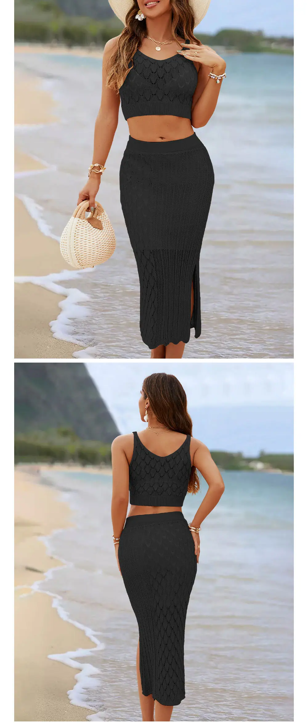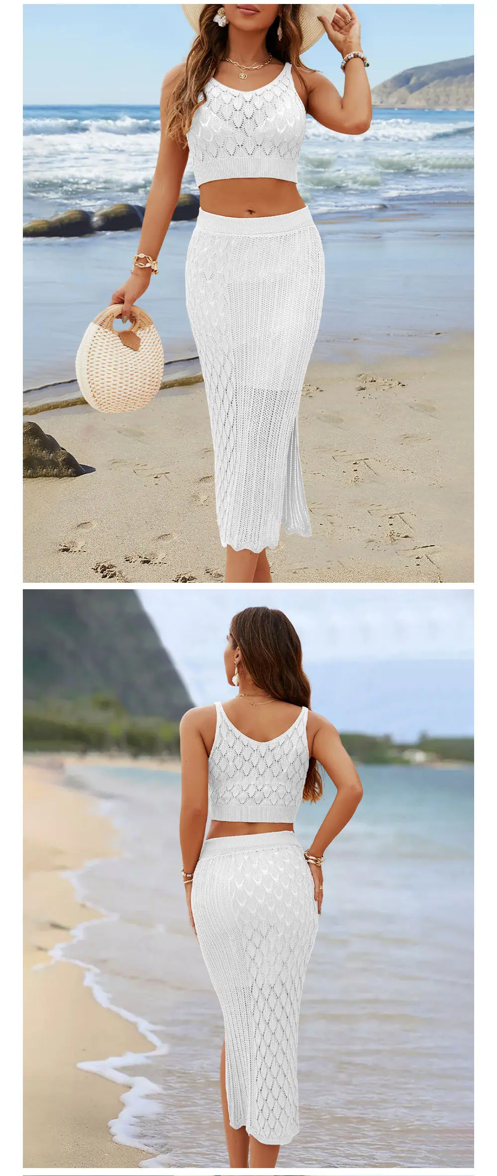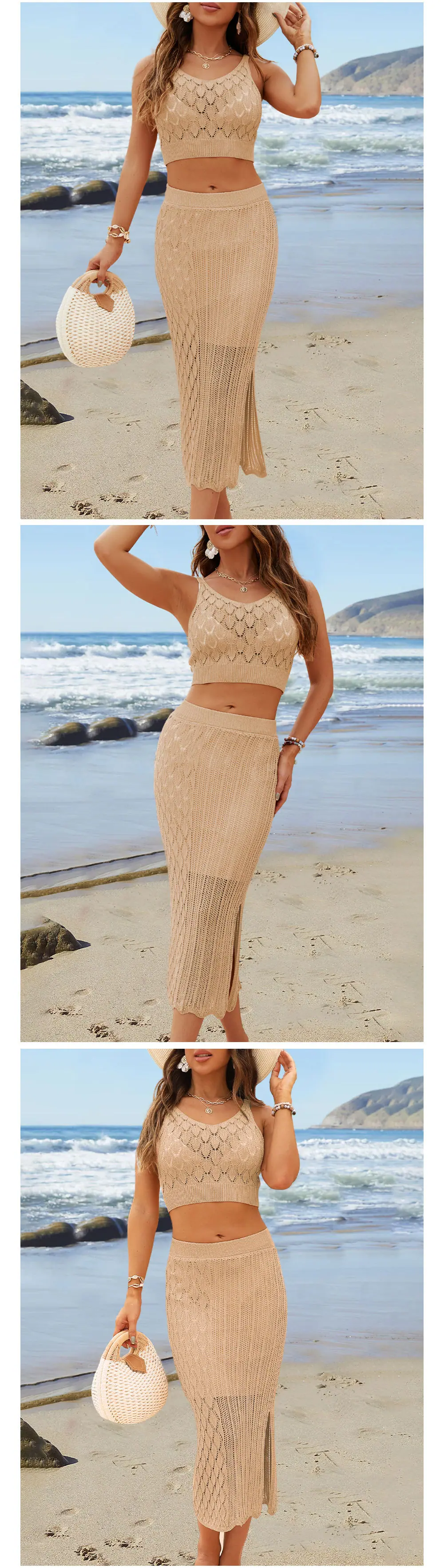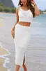 Conjunto de dos piezas de verano 2026 Amazon Nuevo Estilo Europeo y Americano Color Sólido con Camiseta de Tirantes y Falda Larga con Abertura Artículo de Venta Caliente