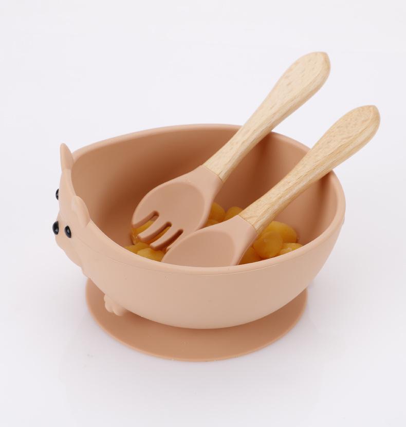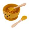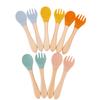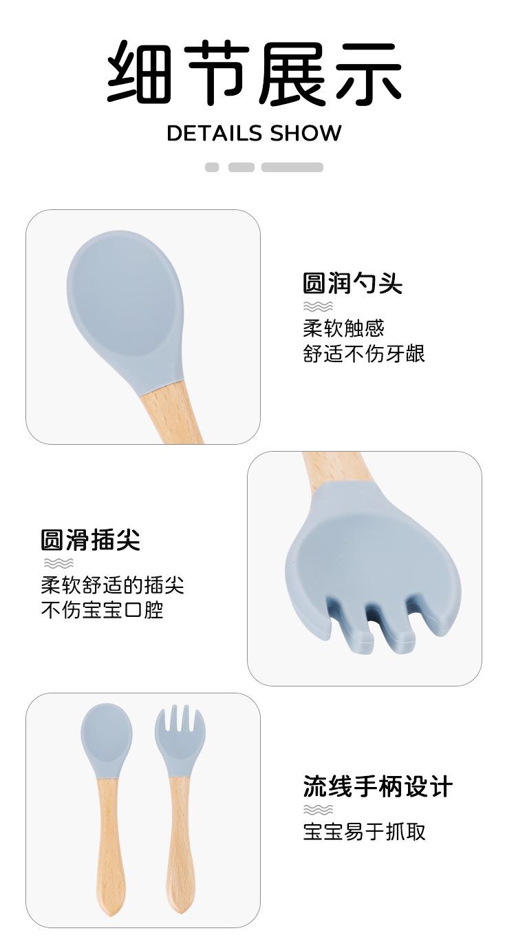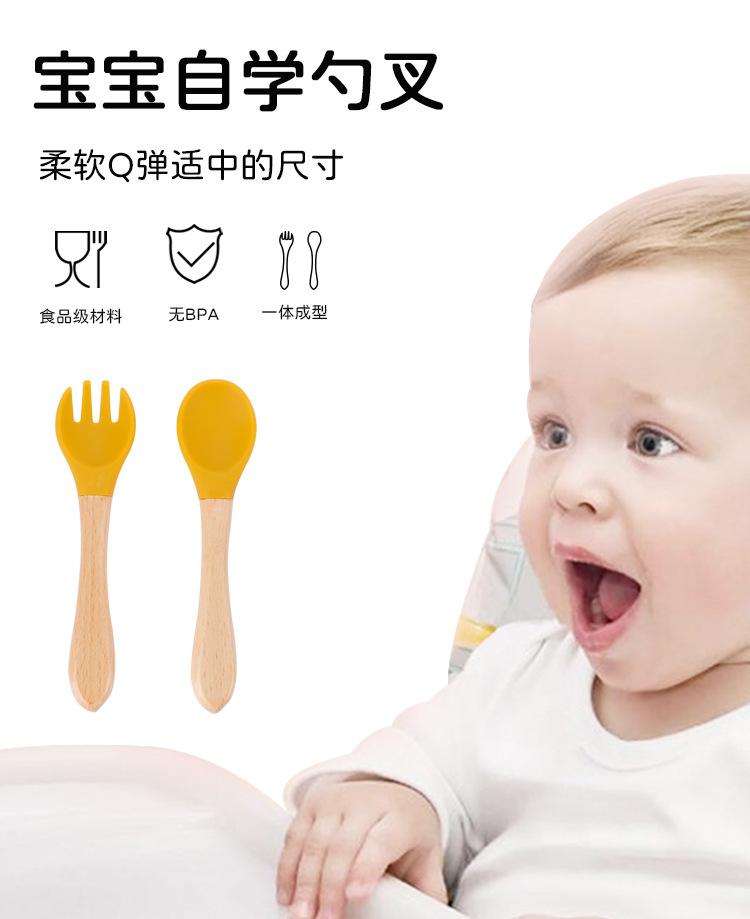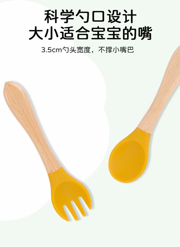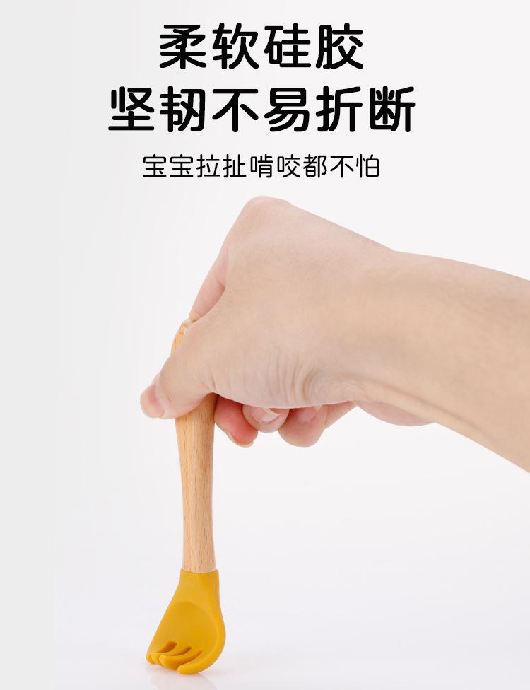 Cuchara Tenedor Suave de Silicona para Bebé Vajilla Suplemento Alimenticio Bebé Aprendiendo a Comer Cuchara Tenedor Mango de Madera Vajilla para Madre e Hijos