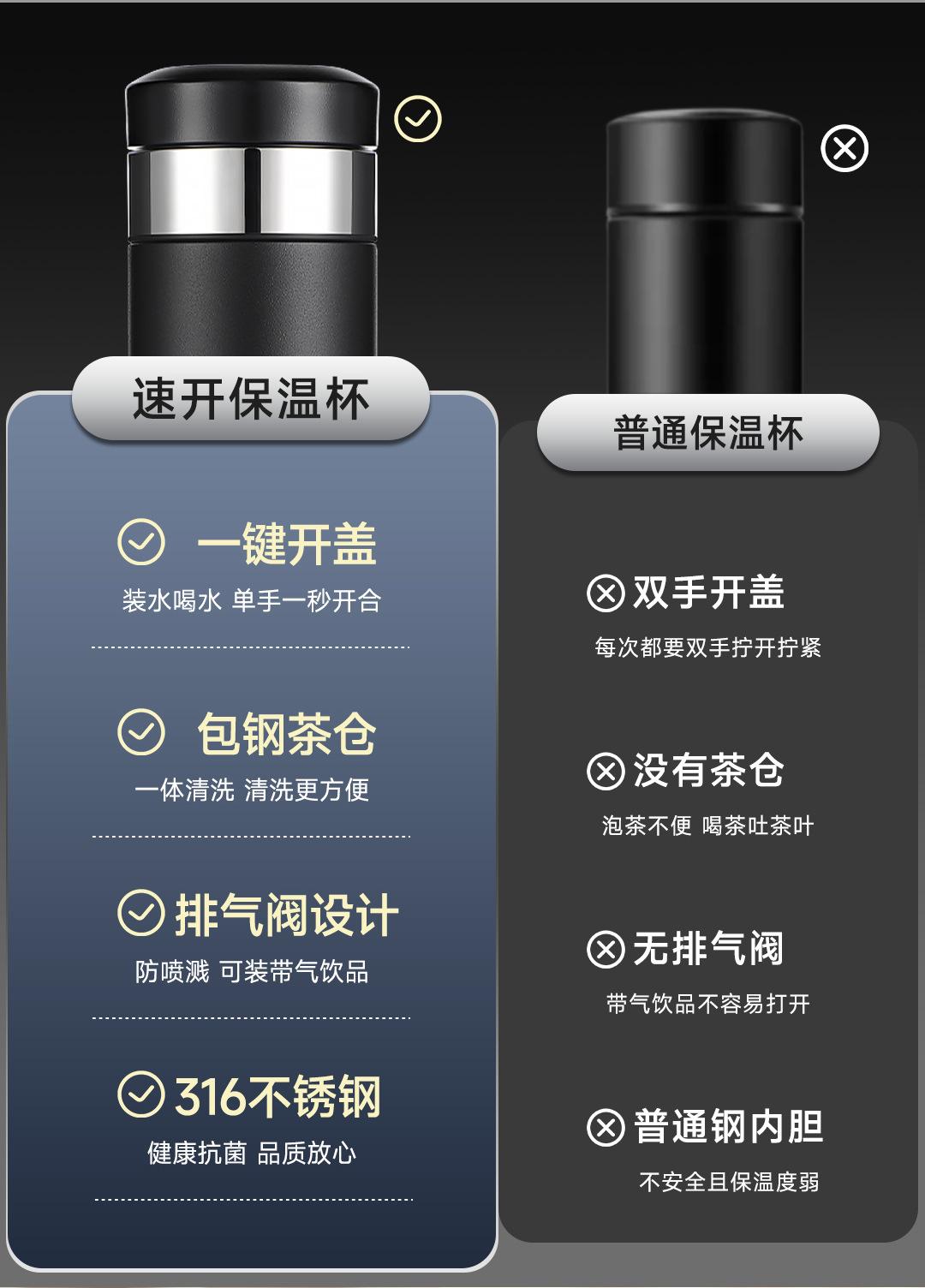 Vaso Termo Xihu de Apertura con un Clic 316 Separación de Agua y Té Taza de Té Vaso para Agua de Coche Vaso de Apertura Rápida Listo para Personalización