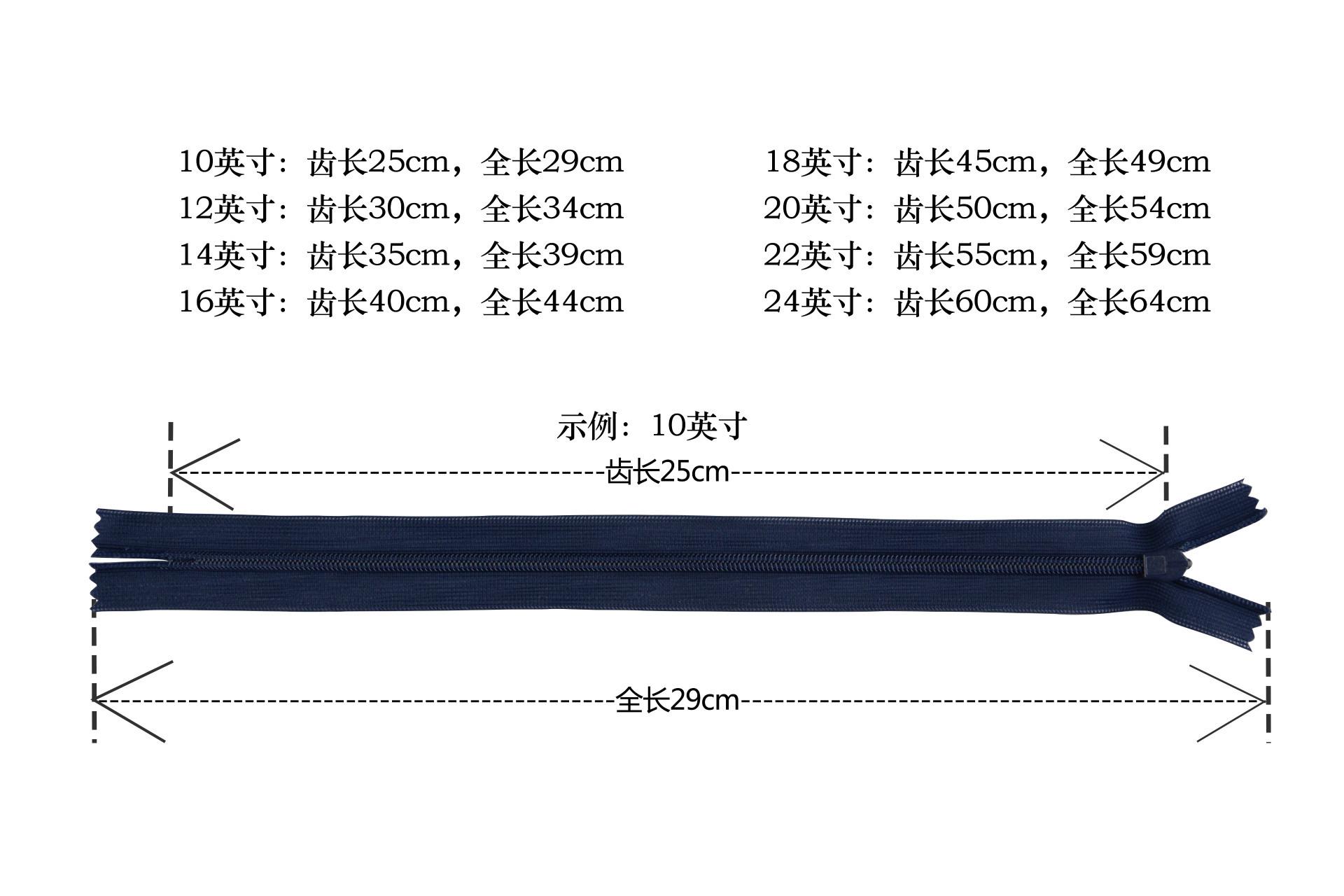 Cremalleras de nailon, invisibles, con hilo en Y, moldeadas por compresión, metálicas y varias especiales.