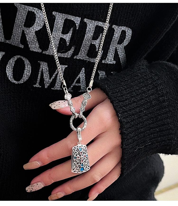Anillo colgante de plata de ley 925 Ruitai, nuevo estilo chino, collar de estilo nacional, cadena unisex que combina con todo, ropa de moda.