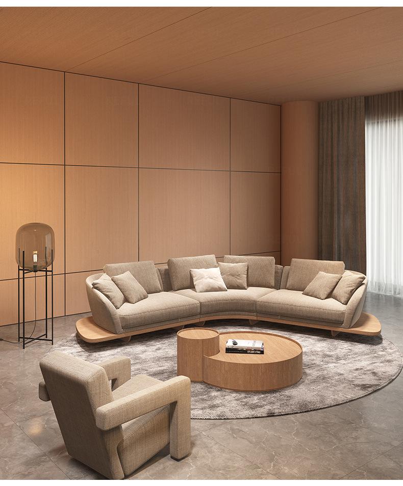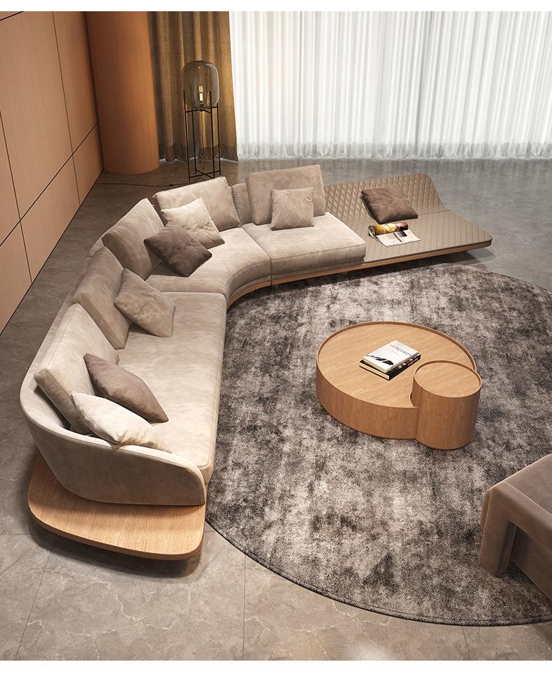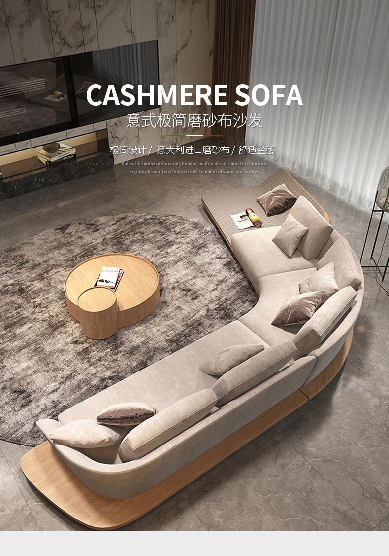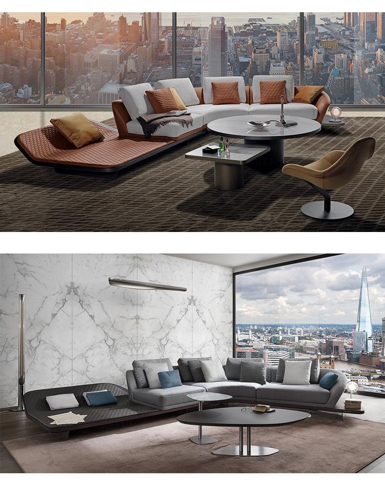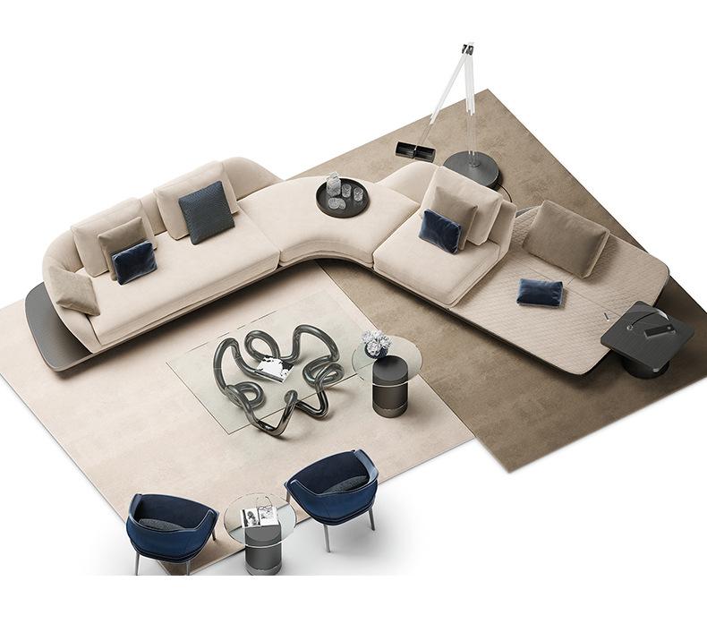 Sofá de diseño italiano nórdico Ferrari sala de estar esquina combinación curva sofá de tela capa plana grande