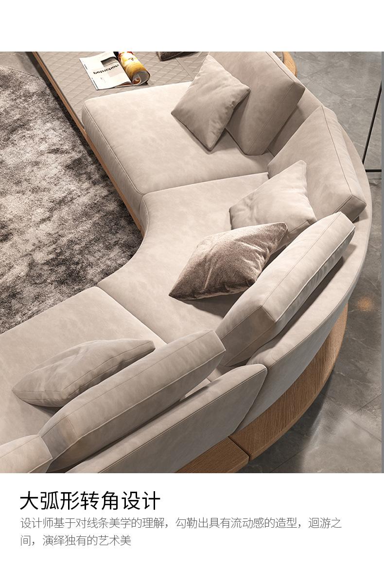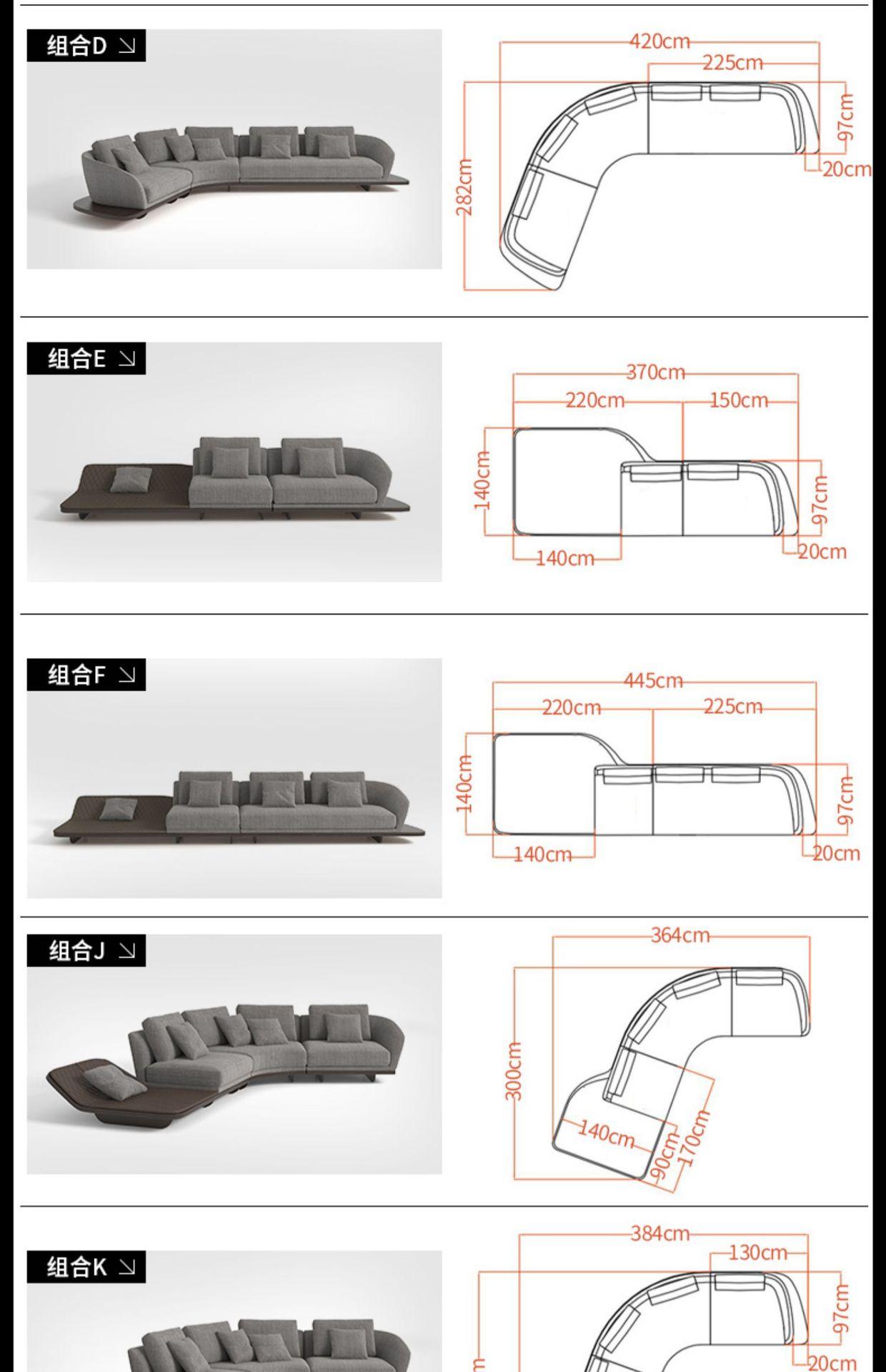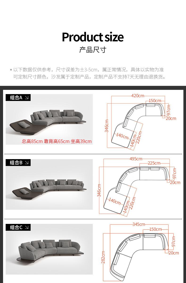 Sofá de diseño italiano nórdico Ferrari sala de estar esquina combinación curva sofá de tela capa plana grande