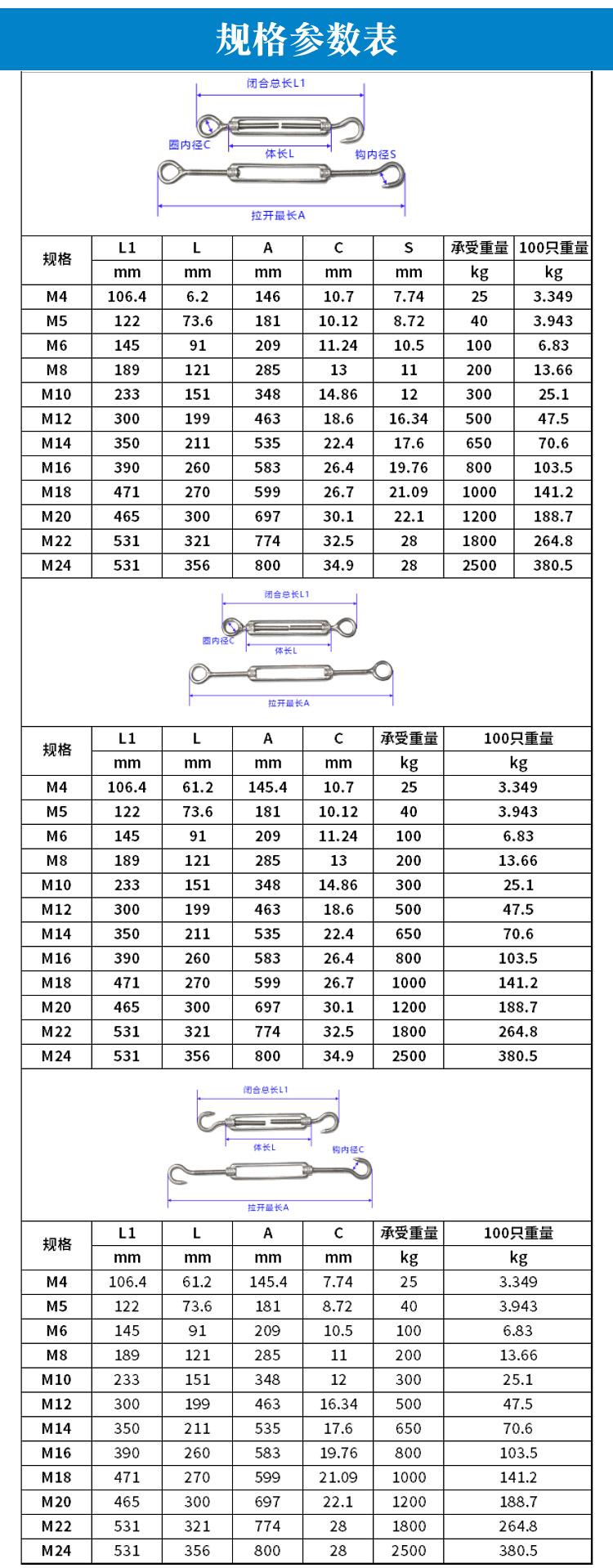 Acero inoxidable 304 tensor de tornillo de canasta de flor abierta Perno tensor de cable tensor de cable