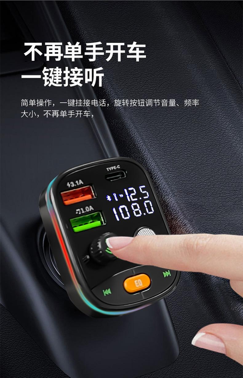 Cargador de coche Q8 transfronterizo, cargador de coche, carga rápida, reproductor de MP3 Bluetooth, encendedor de coche, cargador de coche inteligente PD