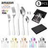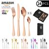 Juego de 24 piezas de acero inoxidable 1010 de borde cruzado, cuatro cajas de regalo negras principales, juego de cuchillos, tenedores y cucharas para carne estilo occidental para hotel