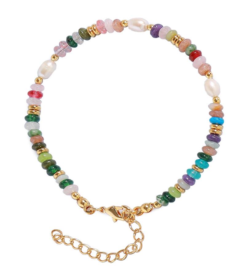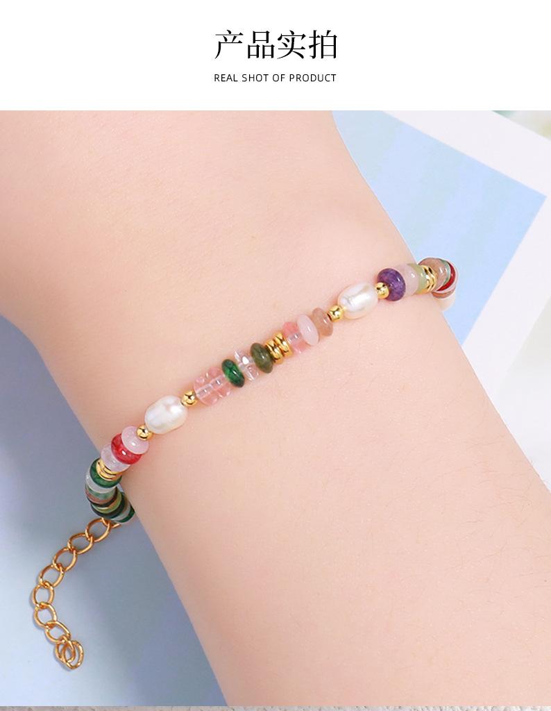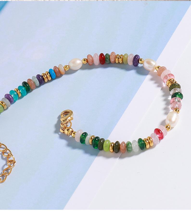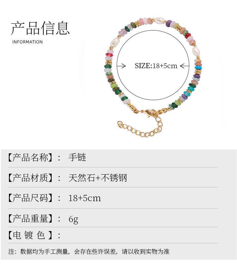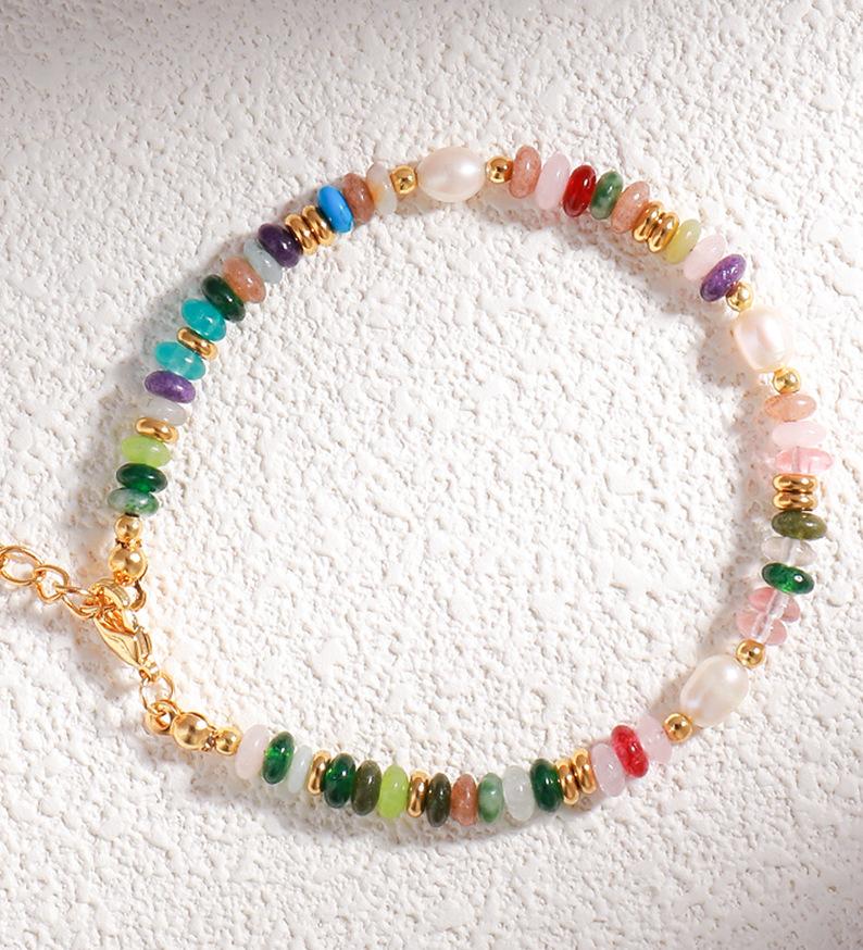 Pulsera de cuentas de piedra natural colorida de venta caliente europea y americana transfronteriza, pulsera bohemia de acero inoxidable de color mixto dulce y fresco