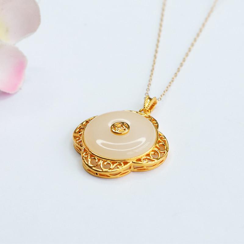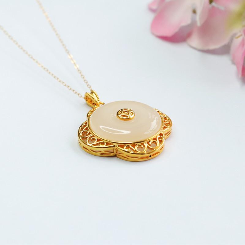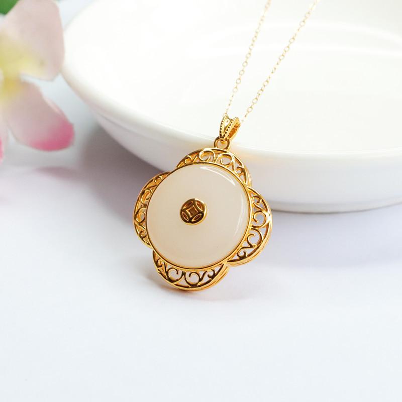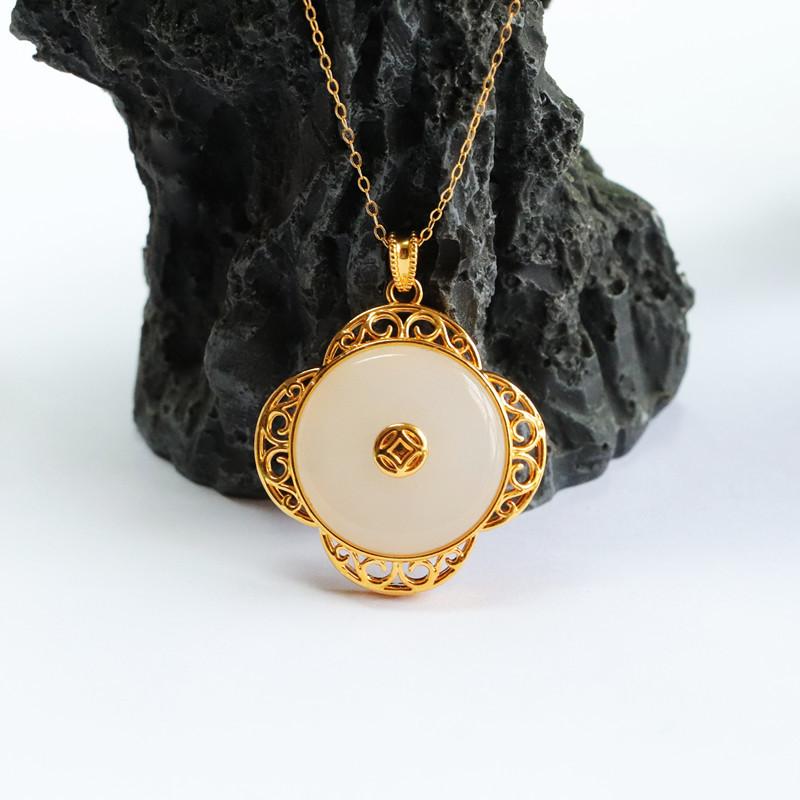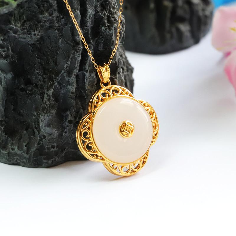 Colgante de Guan Yu con Incrustaciones de Oro de 18K y Jade Hetian Natural, Jade Blanco, Hebilla de la Paz, Collar, Suministro Directo de Fábrica S2092906