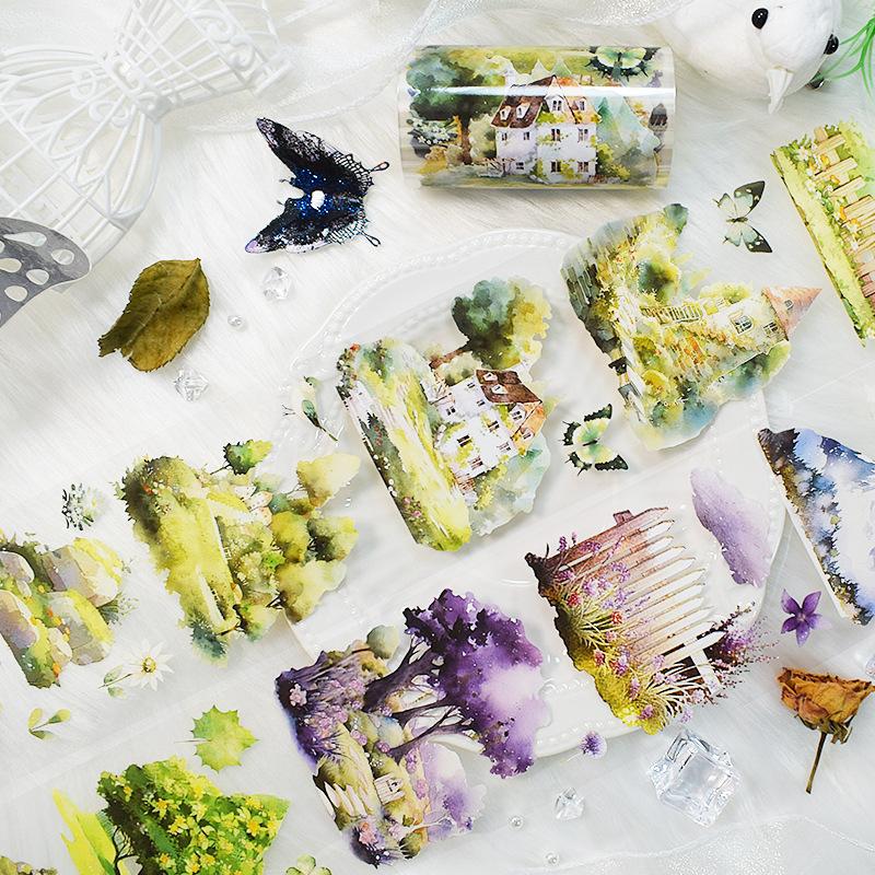 Cinta de diario PET nueva transfronteriza material de flores personaje retro construcción paisaje decoración fondo cinta de diario