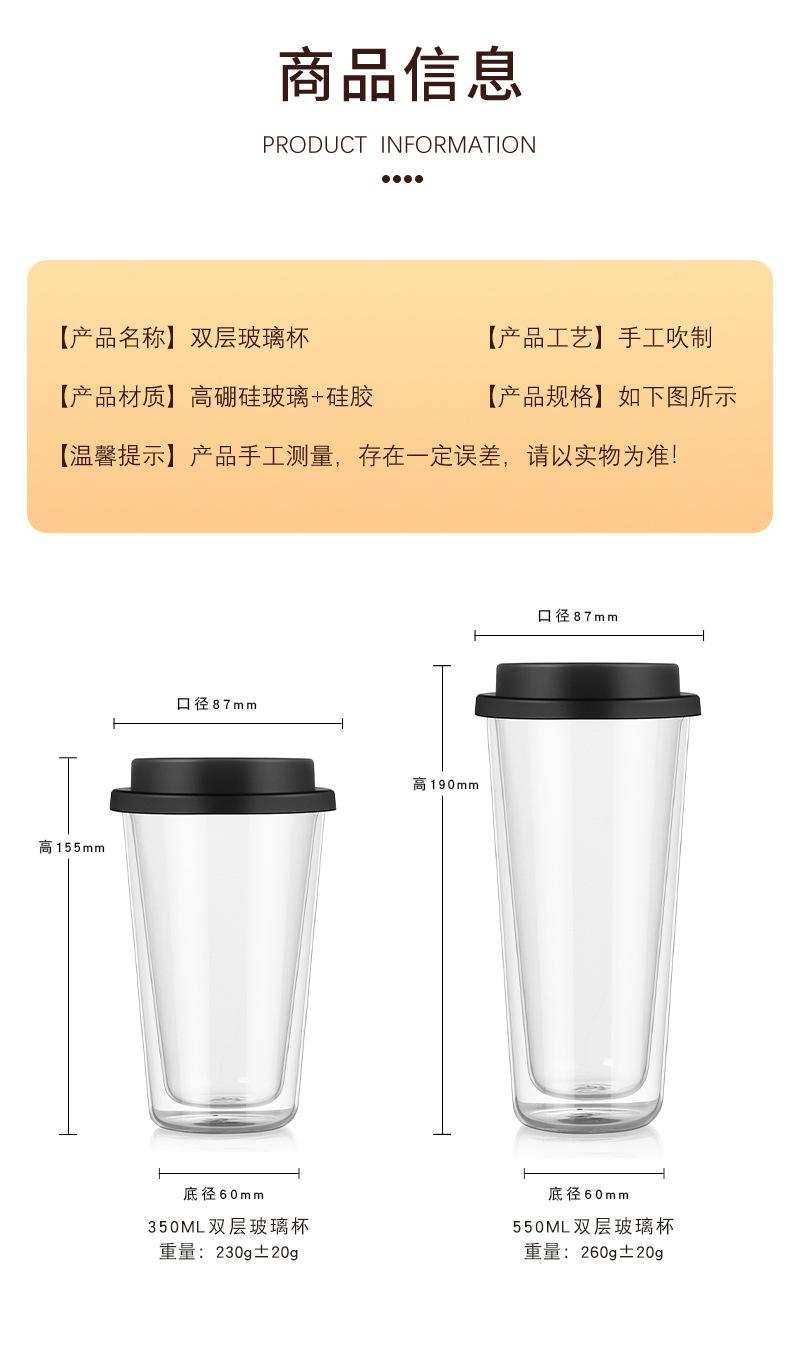 550ML(230±20g):Diámetro de la boca 8.7cm,Altura 19cm,Diámetro de la base 6cm;