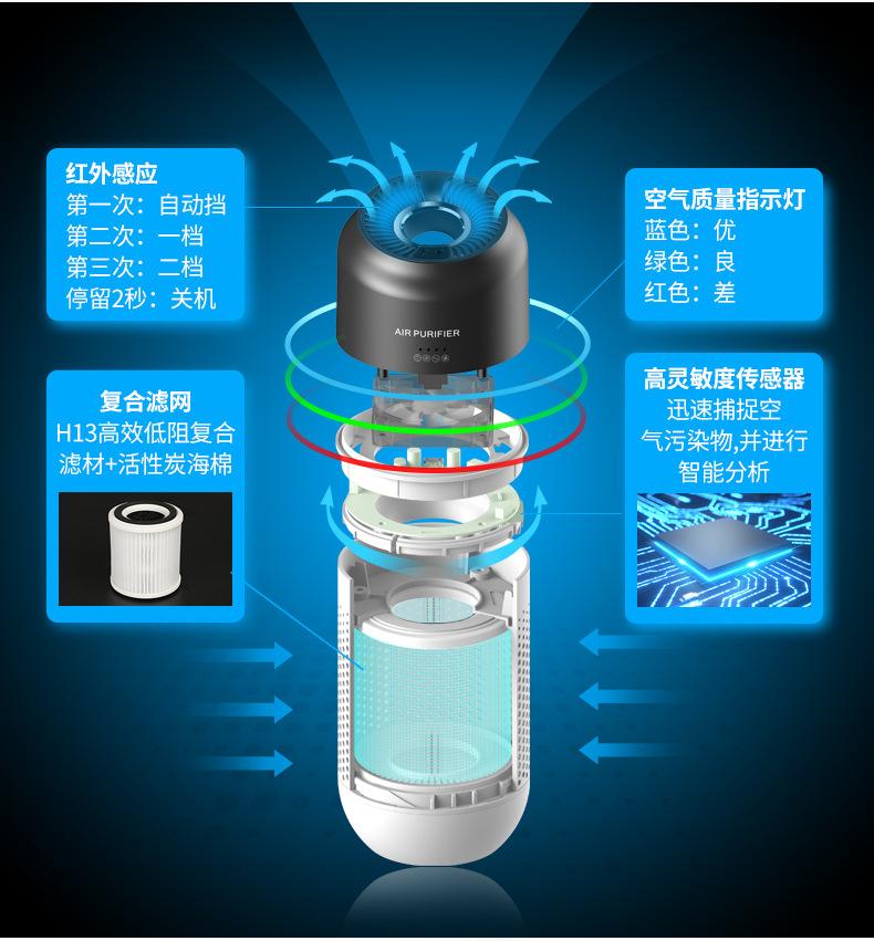 Purificador de aire portátil para coche transfronterizo, con eliminación de olores, esterilización, ozono de iones negativos, purificador de coche pequeño.