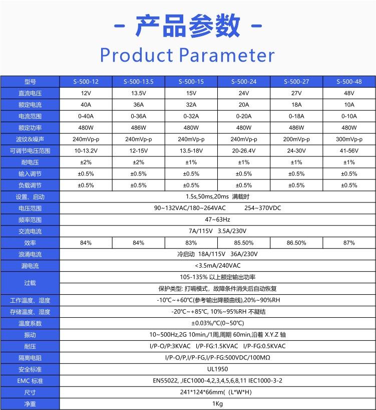 S-500-12, S-500-13.5, S-500-15, S-500-24, S-500-27, S-500-48, S-600-12, S-600-24, S-600-48, S-800-12, S-800-24...