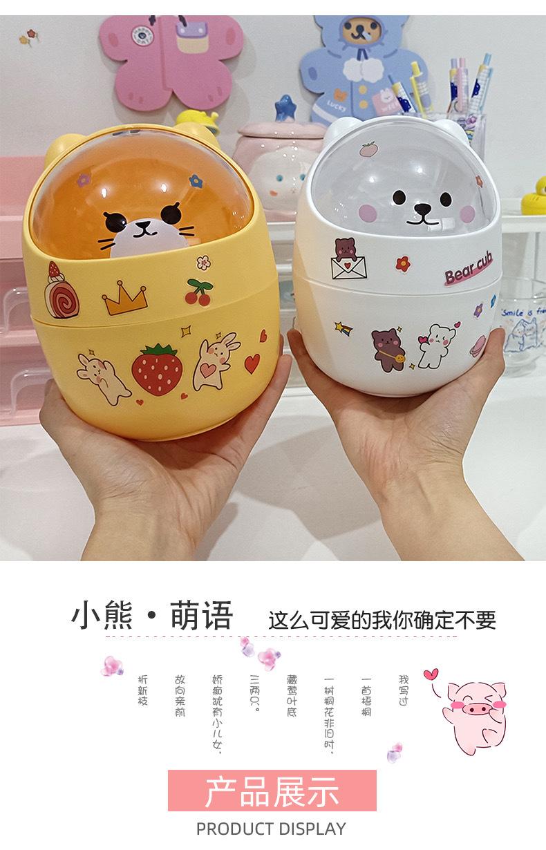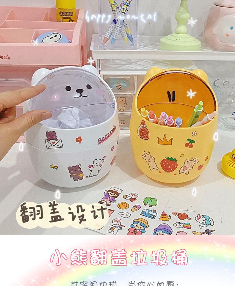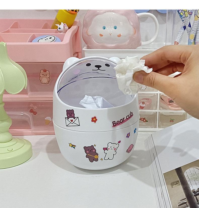 Papelera de escritorio, bonita, de tamaño pequeño, para el hogar, dormitorio, oficina, escritorio con tapa, cesta de papel estilo mini papelera