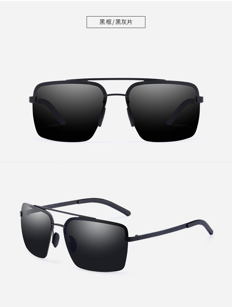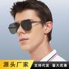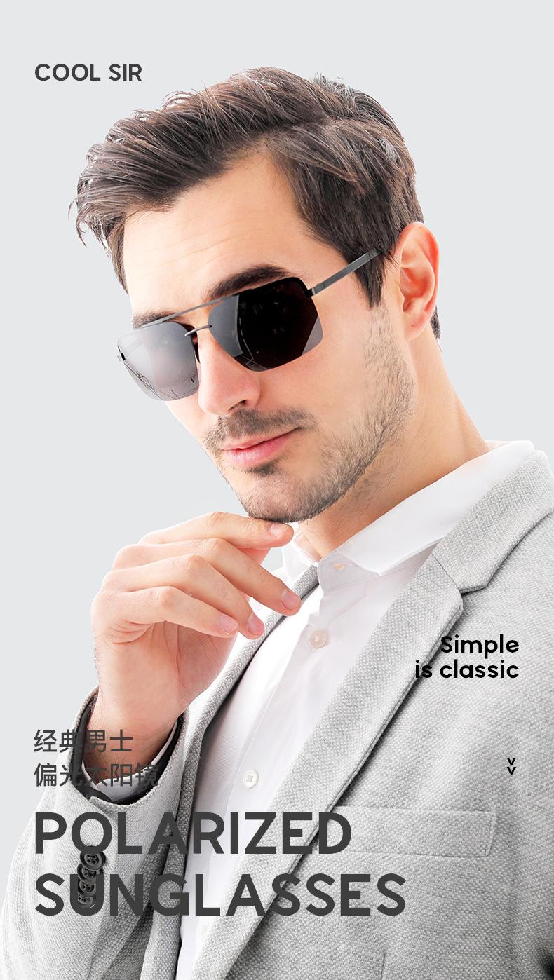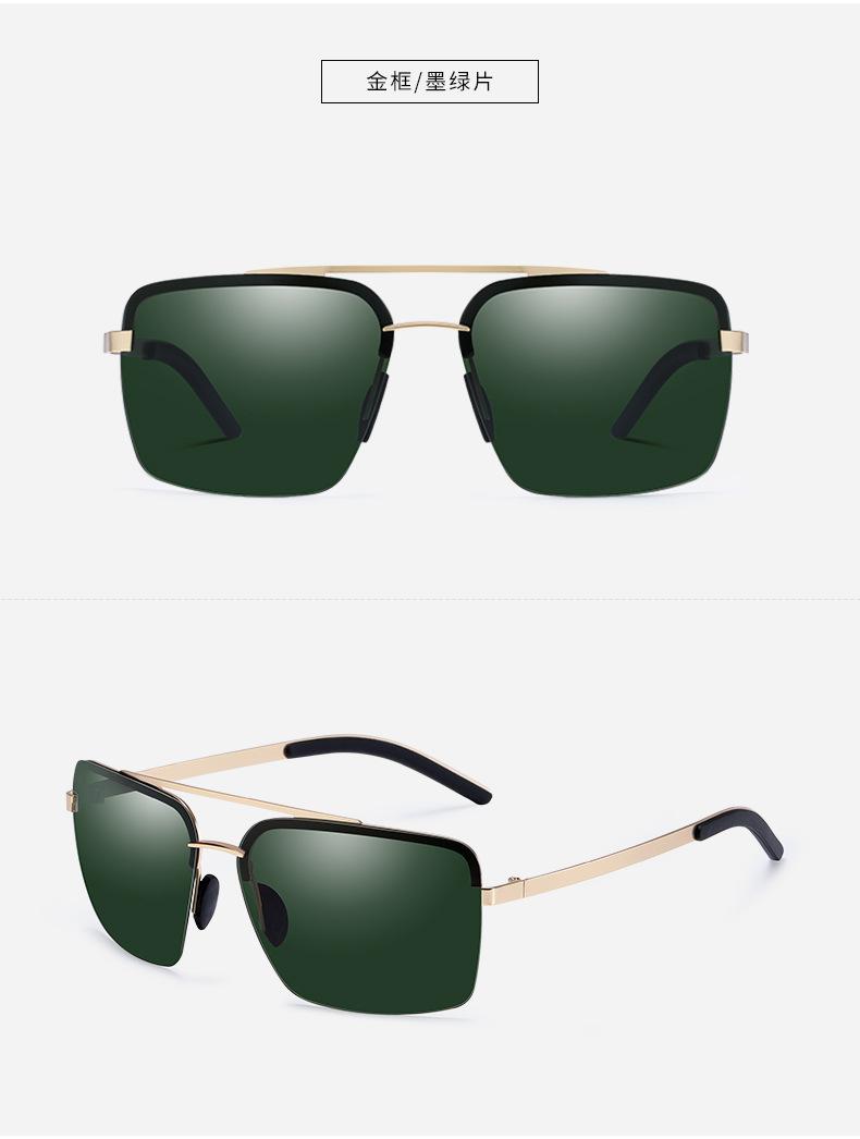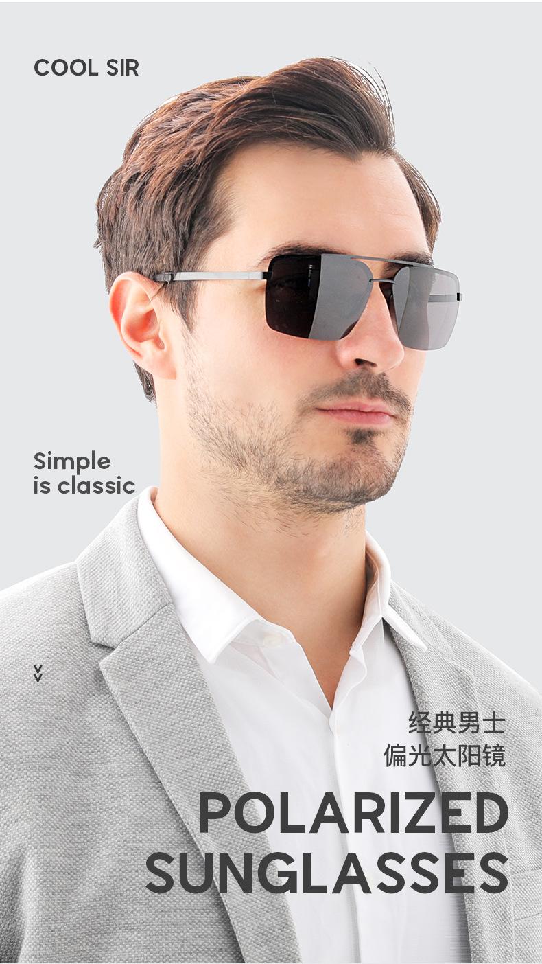 Nuevas Gafas de Sol Polarizadas de Moda para Hombre, de Acero y Cuero, de Media Montura Cuadrada, Doble Varilla, para Conducir y Antideslumbramiento, Venta al por Mayor