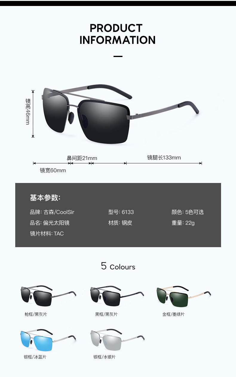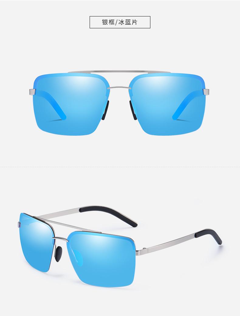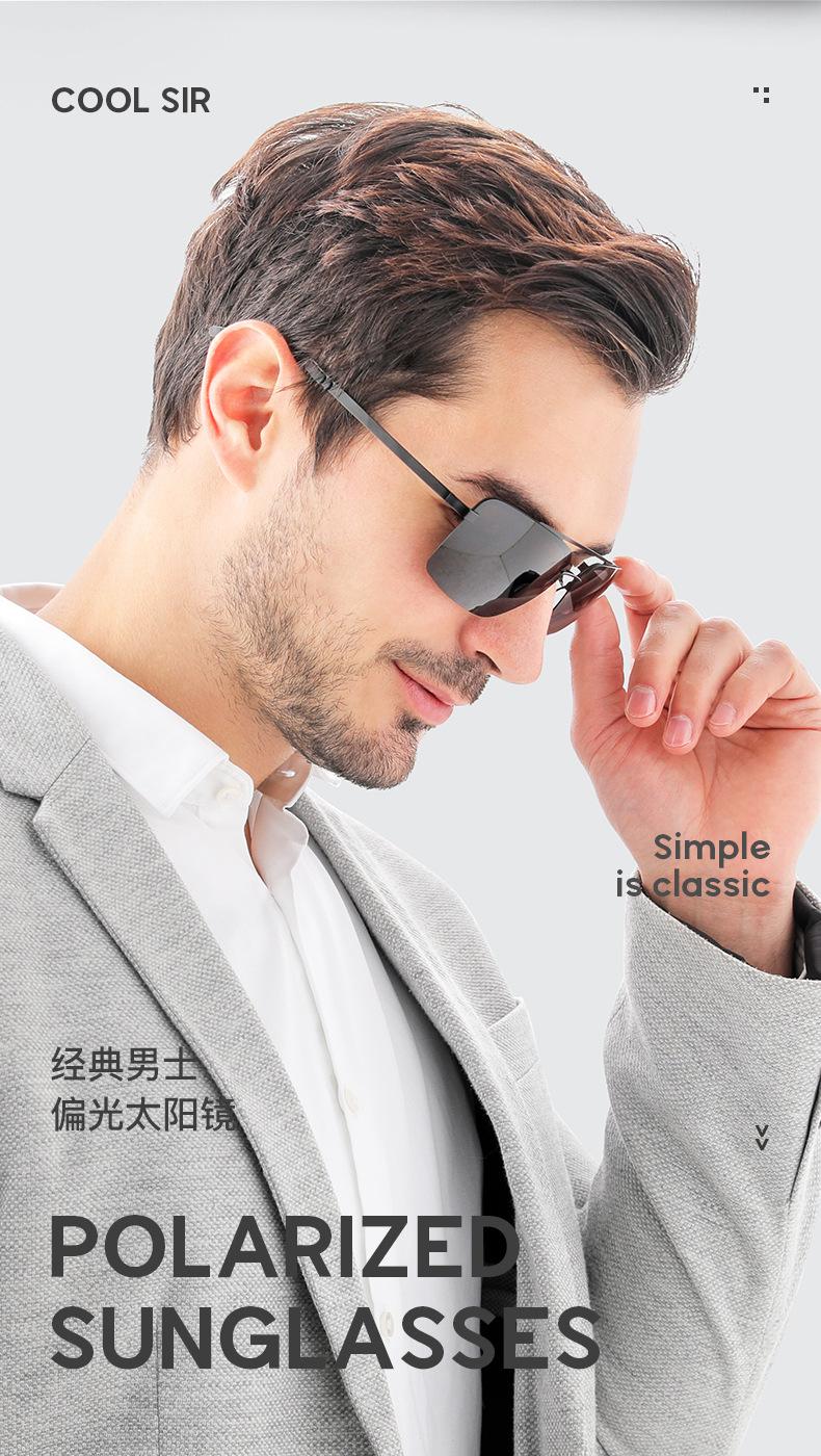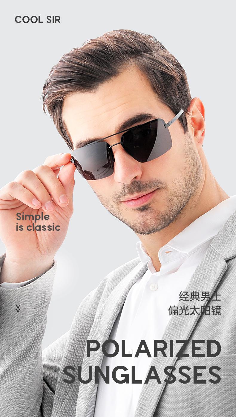 Nuevas Gafas de Sol Polarizadas de Moda para Hombre, de Acero y Cuero, de Media Montura Cuadrada, Doble Varilla, para Conducir y Antideslumbramiento, Venta al por Mayor