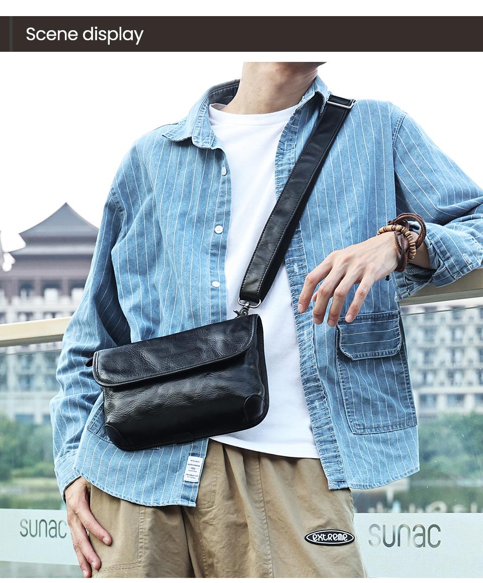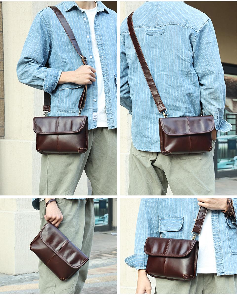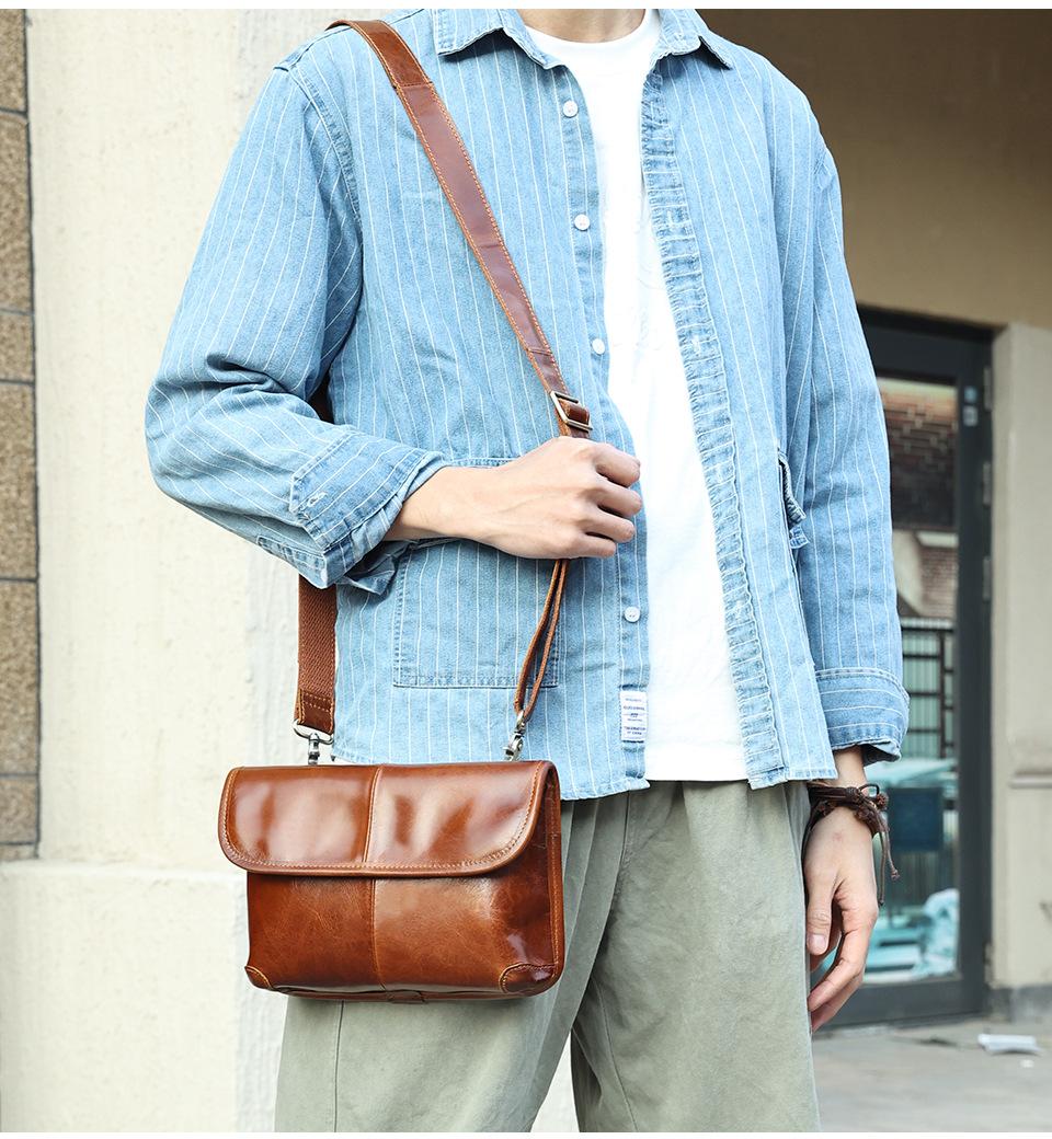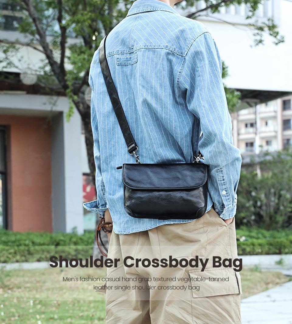 Nuevo Bolso Cruzado de Cuero Genuino Bolso de Hombro Retro de Alta Gama Commuter Versátil Bolso Cruzado de Hombro para Hombre Bolso para Hombre