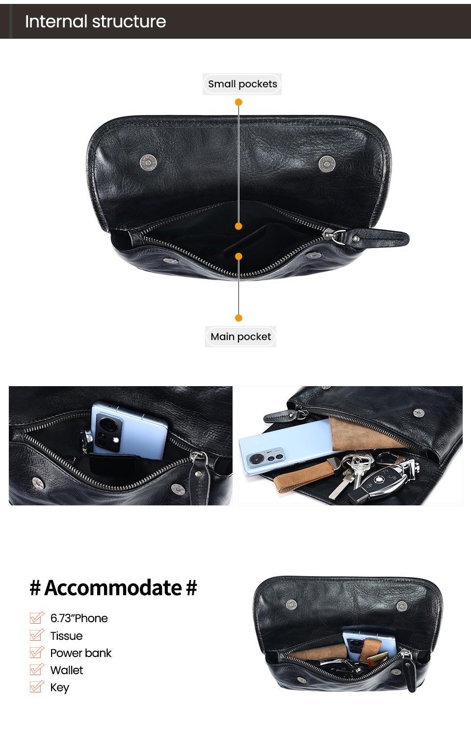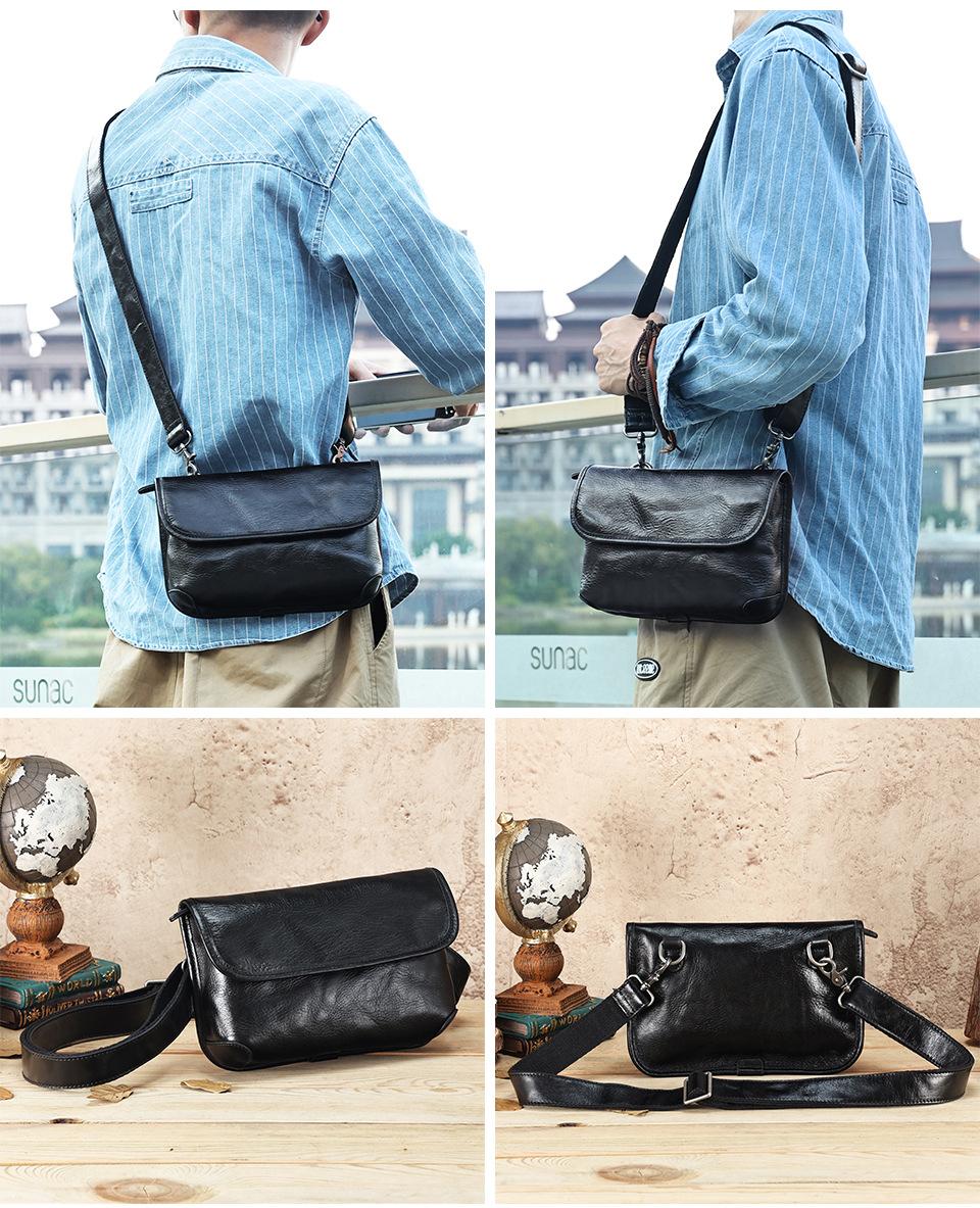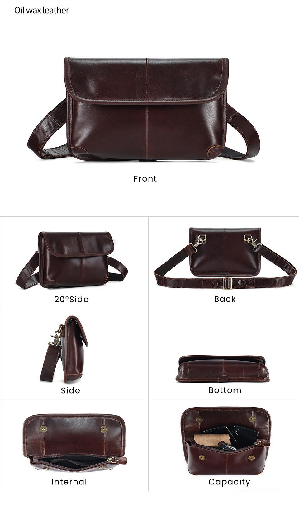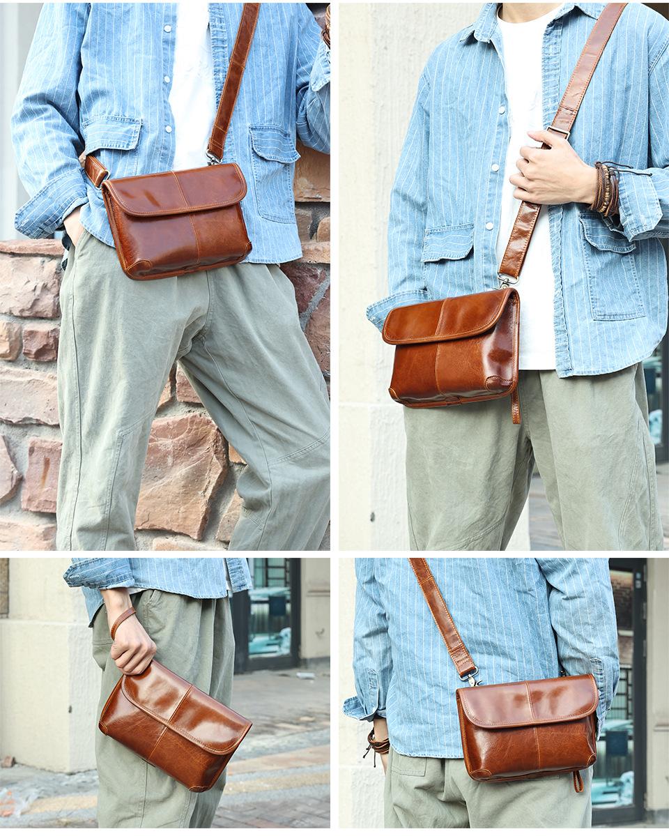 Nuevo Bolso Cruzado de Cuero Genuino Bolso de Hombro Retro de Alta Gama Commuter Versátil Bolso Cruzado de Hombro para Hombre Bolso para Hombre