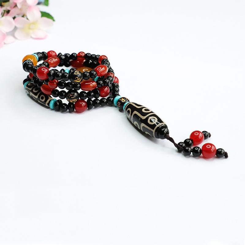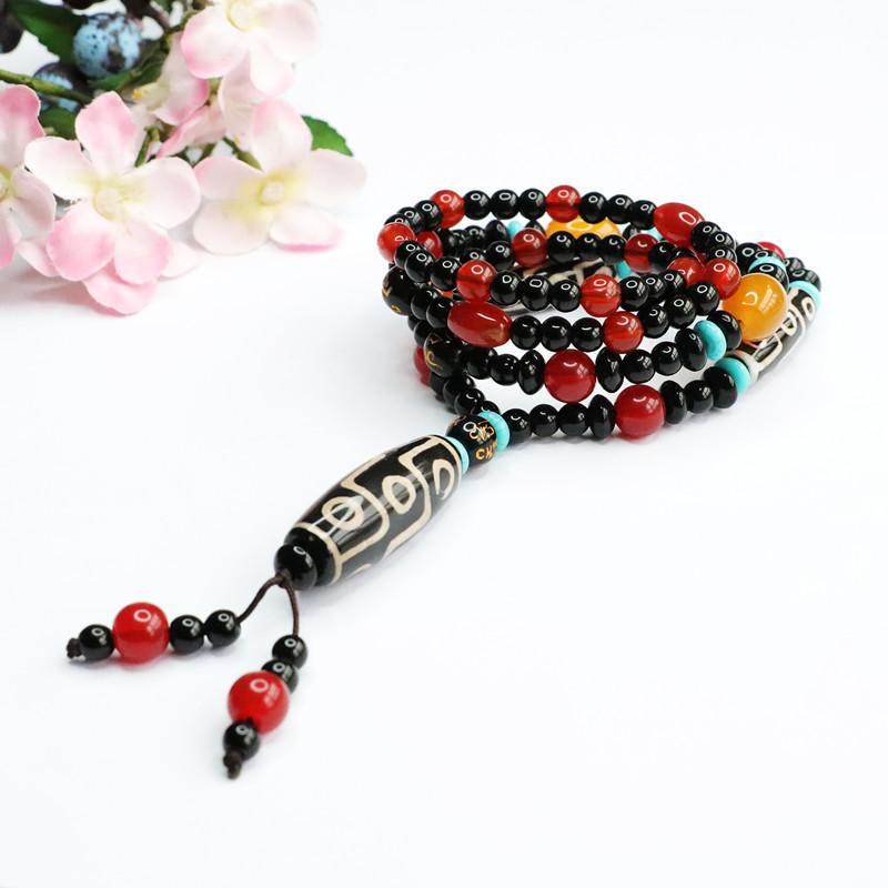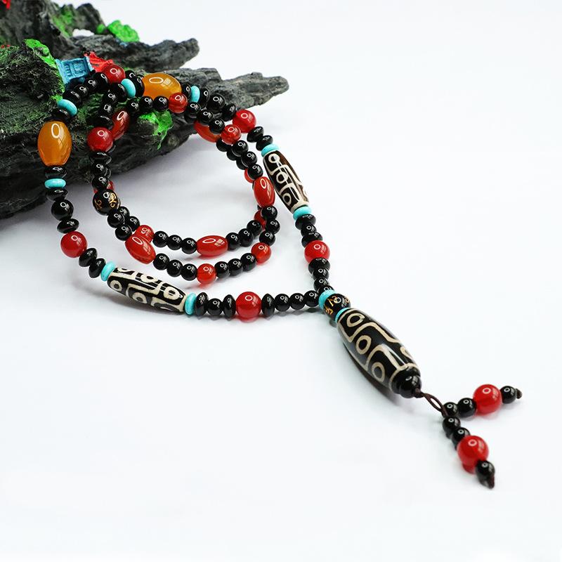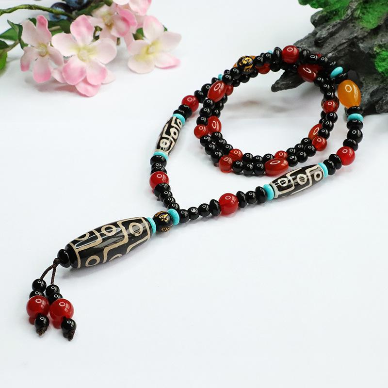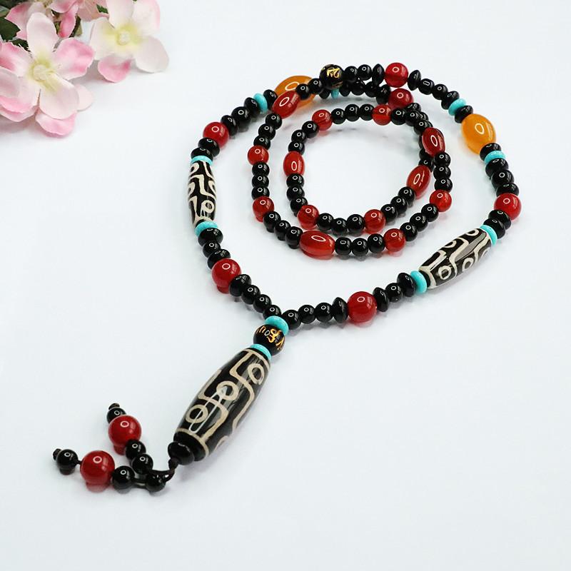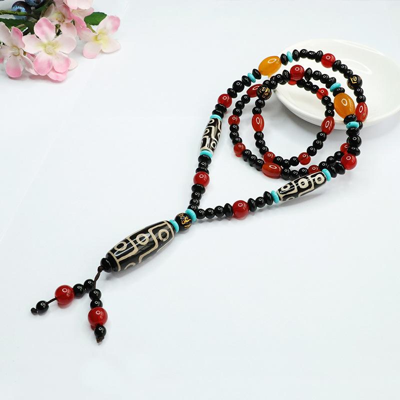 Collar de Cuentas Dzi de Nueve Ojos de Ágata Calcedonia Natural de Guan Yu Tíbet Juego de Cadena de Piedras Preciosas Coloridas Joyería S2052101
