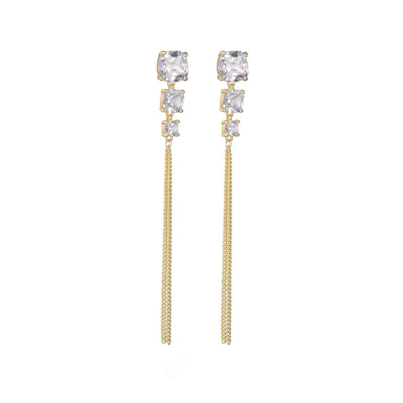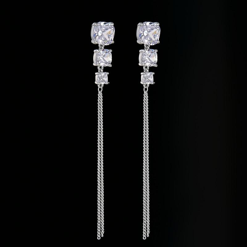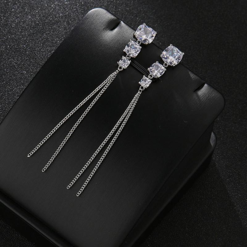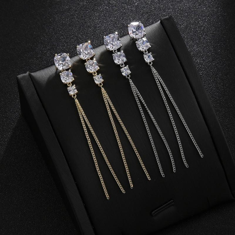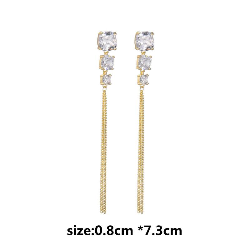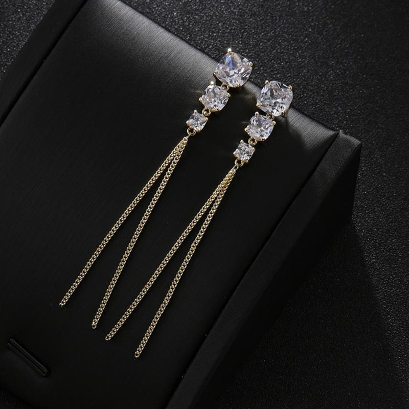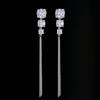 Aretes geométricos de alta gama para niñas, aretes largos con borlas, nuevos aretes coreanos con incrustaciones de circonitas AAA