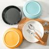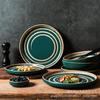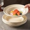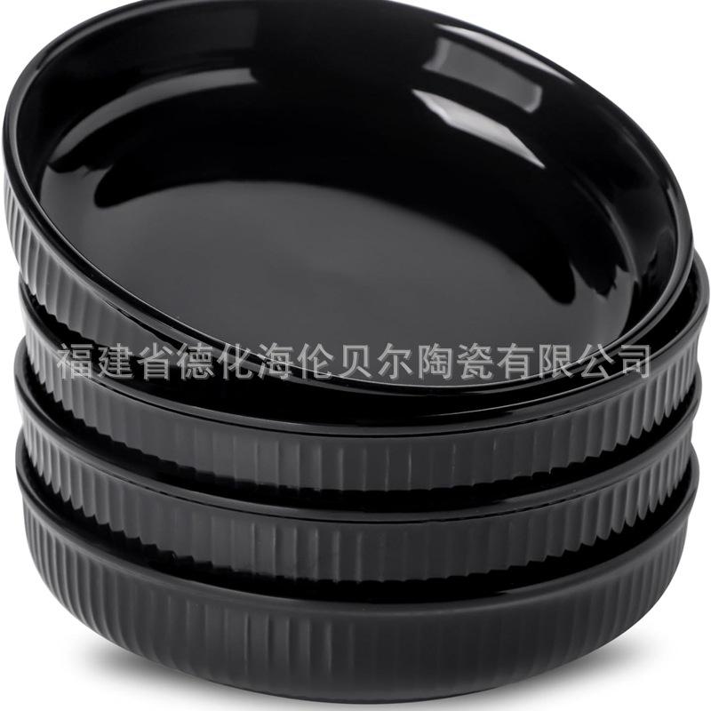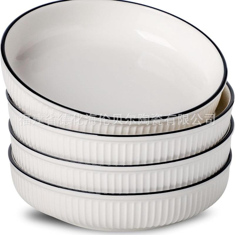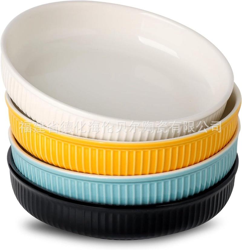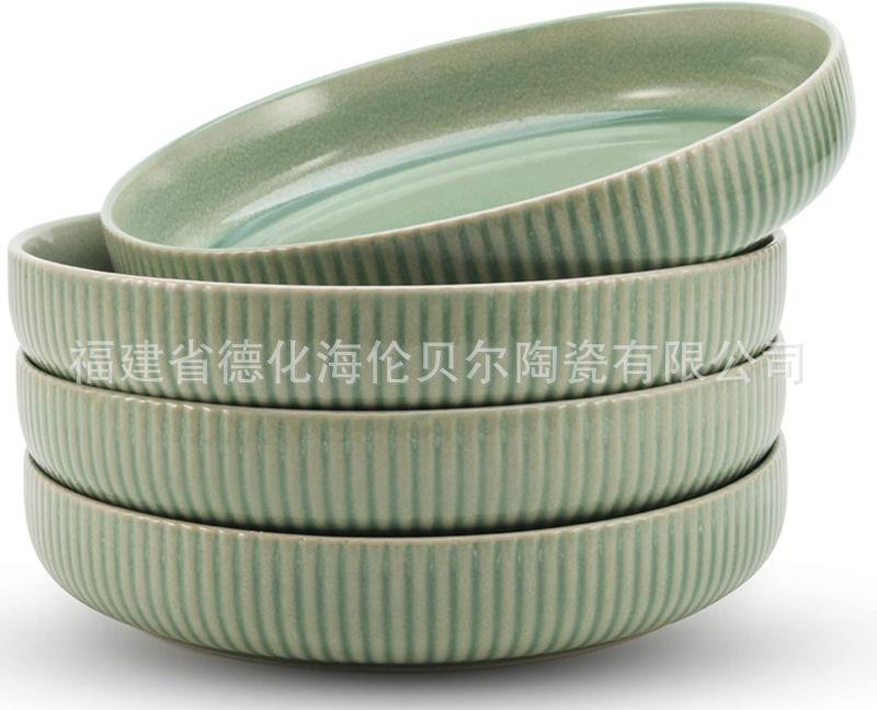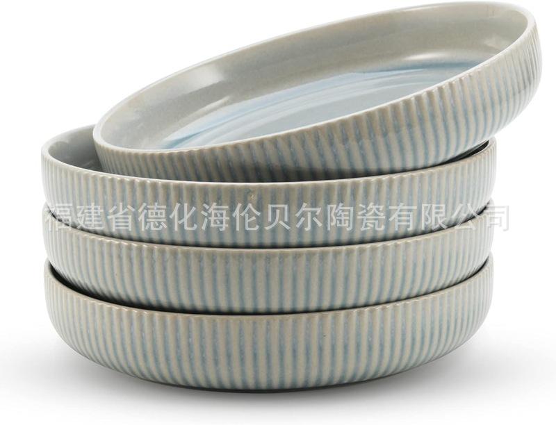 Plato hondo de cerámica con relieve a rayas informal, plato para el hogar, ensaladera de cerámica, plato para pasta, plato occidental de cerámica